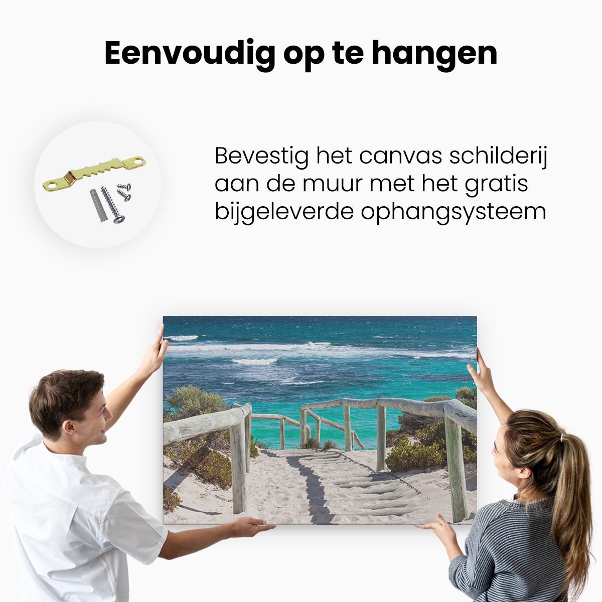 Bij aankoop ontvang je een meegeleverd ophangsysteem, zodat je op een simpele en snelle wijze het schilderij boven de bank of bed kan monteren.