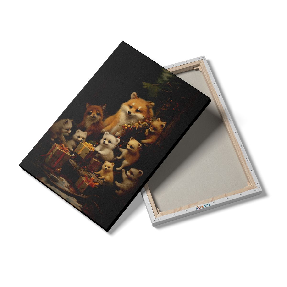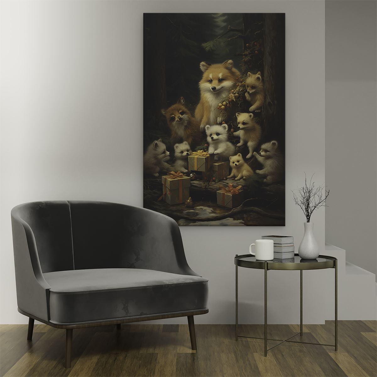 Schilderij Vossen Familie met Kerst Cadeaus - Kerstmis