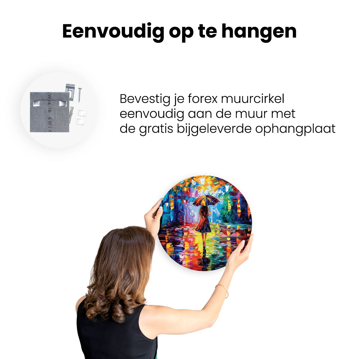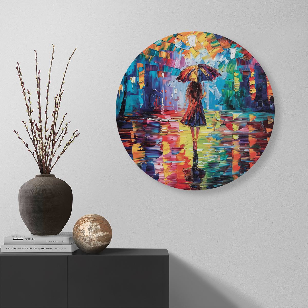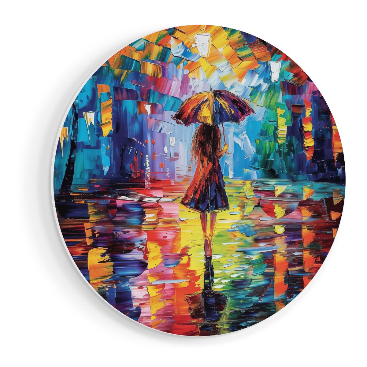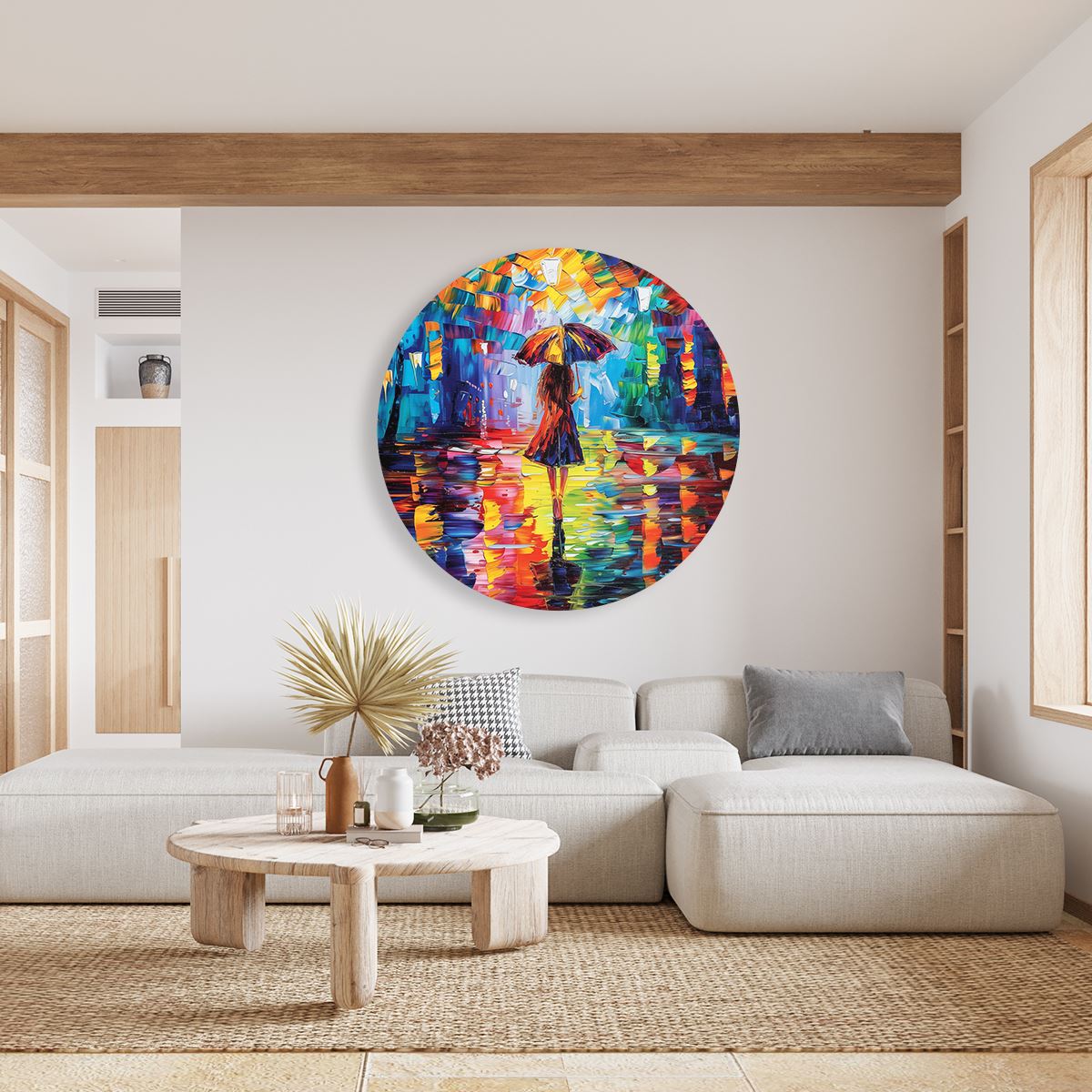 Wandcirkel Vrouw die in de Regen loopt met een Paraplu