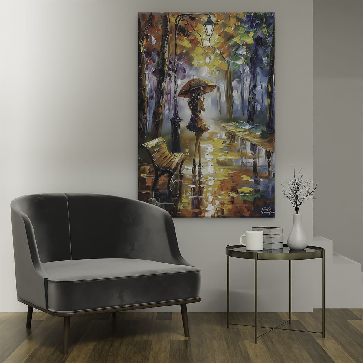 Schilderij Vrouw die in de Regen loopt met een Paraplu