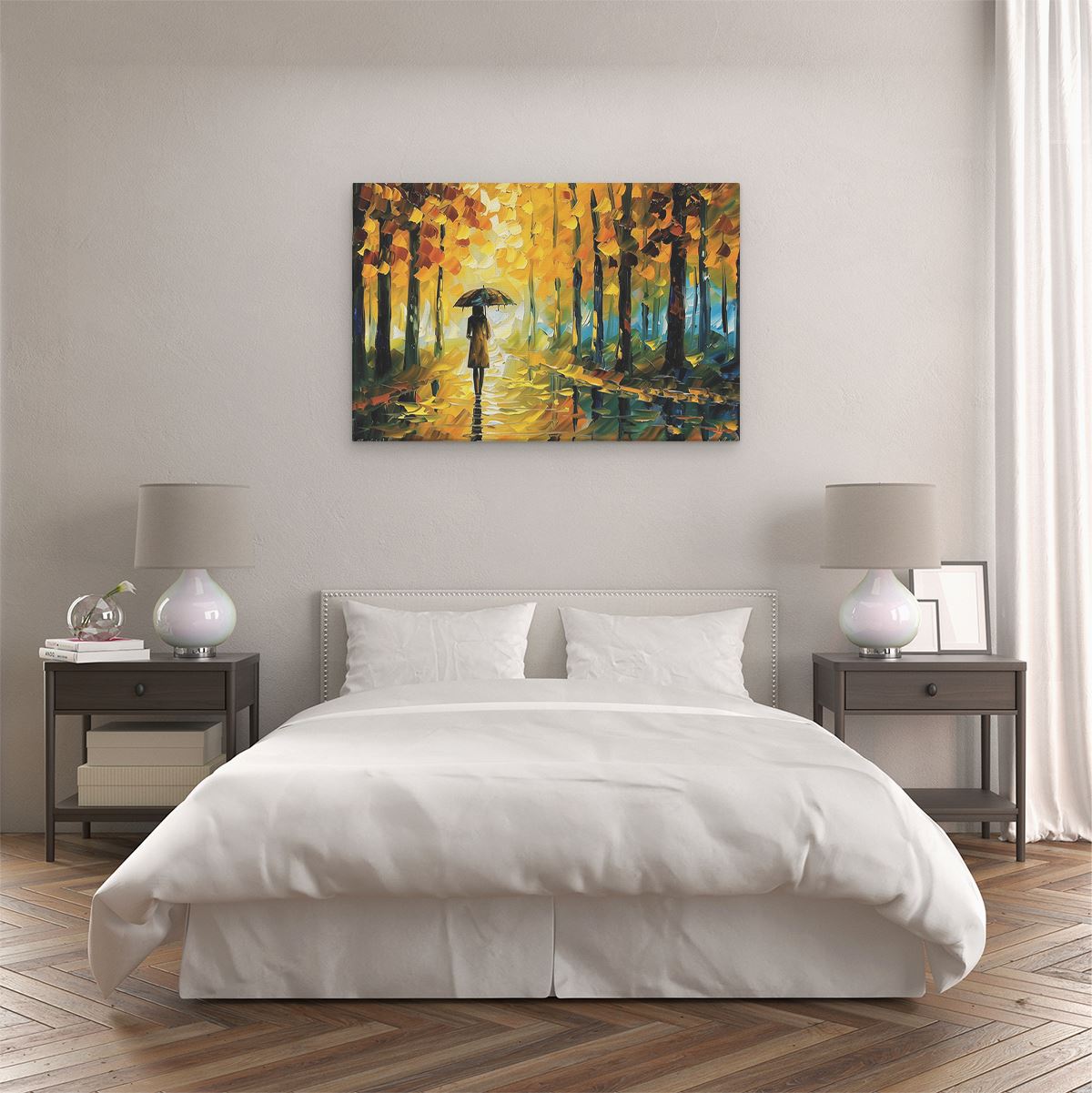 Schilderij Vrouw die in de Regen loopt met een Paraplu