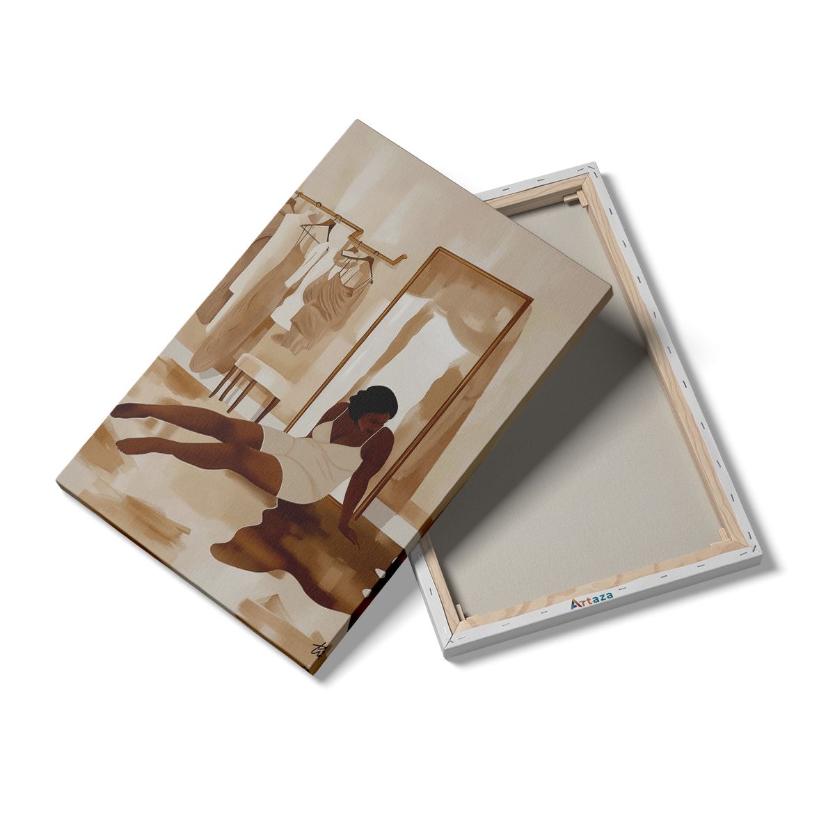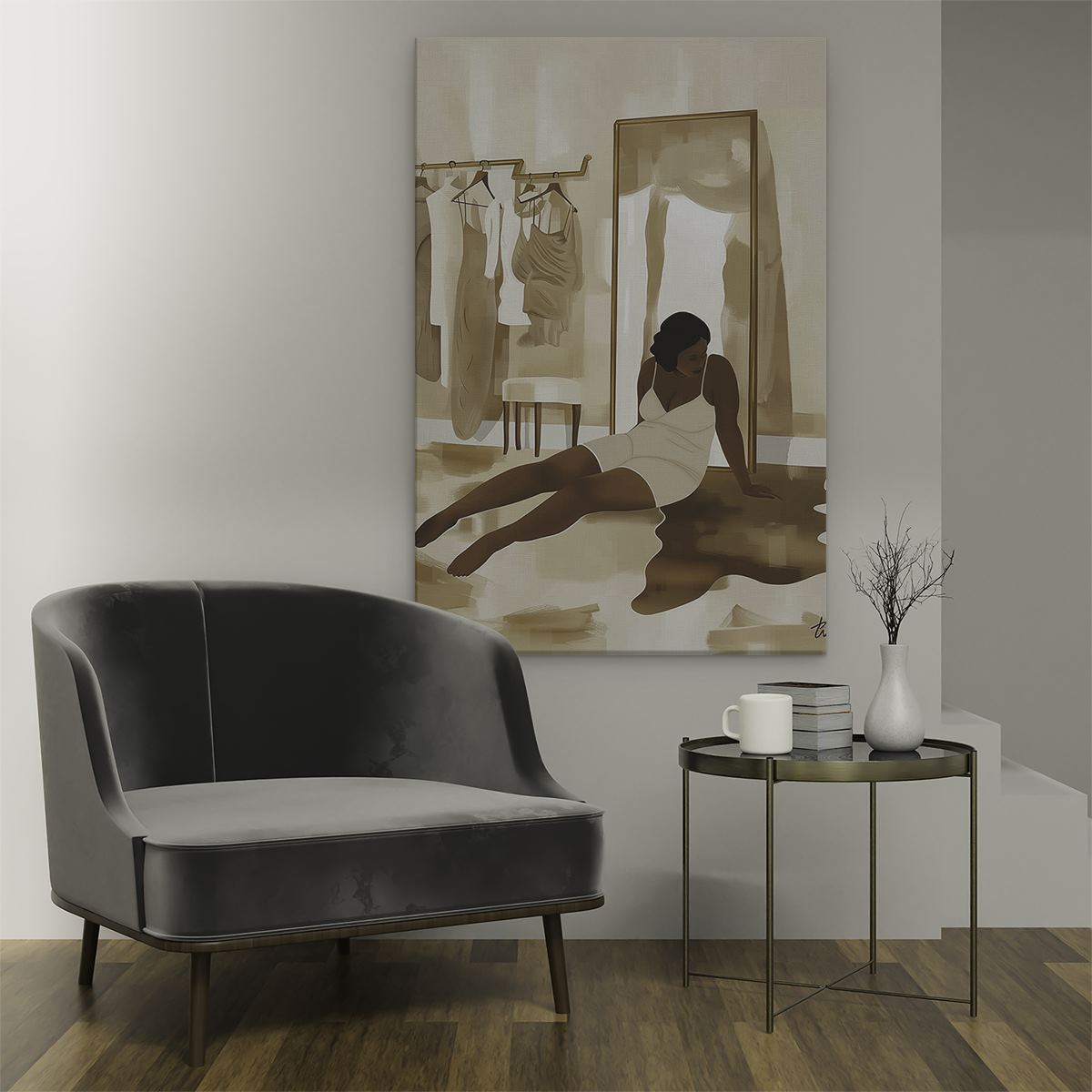 Schilderij Vrouw die op de Vloer ligt voor een Spiegel