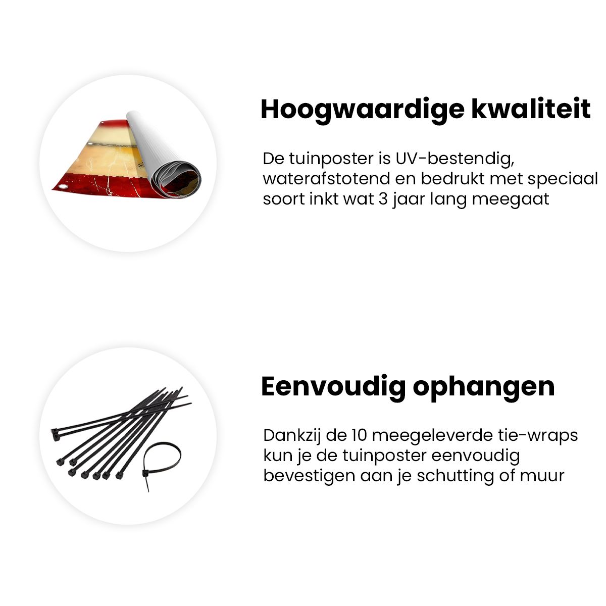 Bij aankoop ontvang je een meegeleverd ophangsysteem, zodat je op een simpele en snelle wijze de tuinposter kan ophangen.