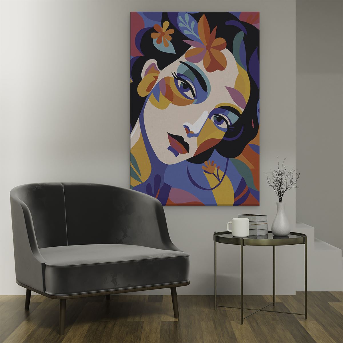 Schilderij Vrouw in Kleuren - Abstract - Bloemen