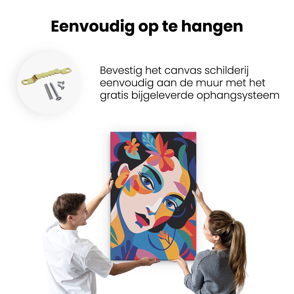 Bij aankoop ontvang je een meegeleverd ophangsysteem, zodat je op een simpele en snelle wijze het schilderij boven de bank of bed kan monteren.