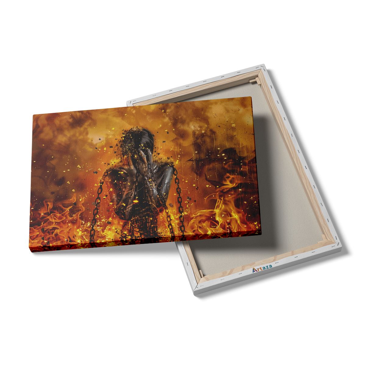 Schilderij Vrouw is Vastgeketend aan een Vuur