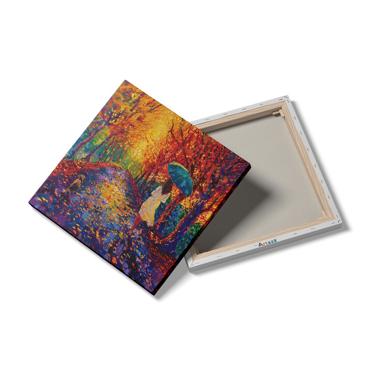 Schilderij Vrouw loopt een Pad Af met een Paraplu