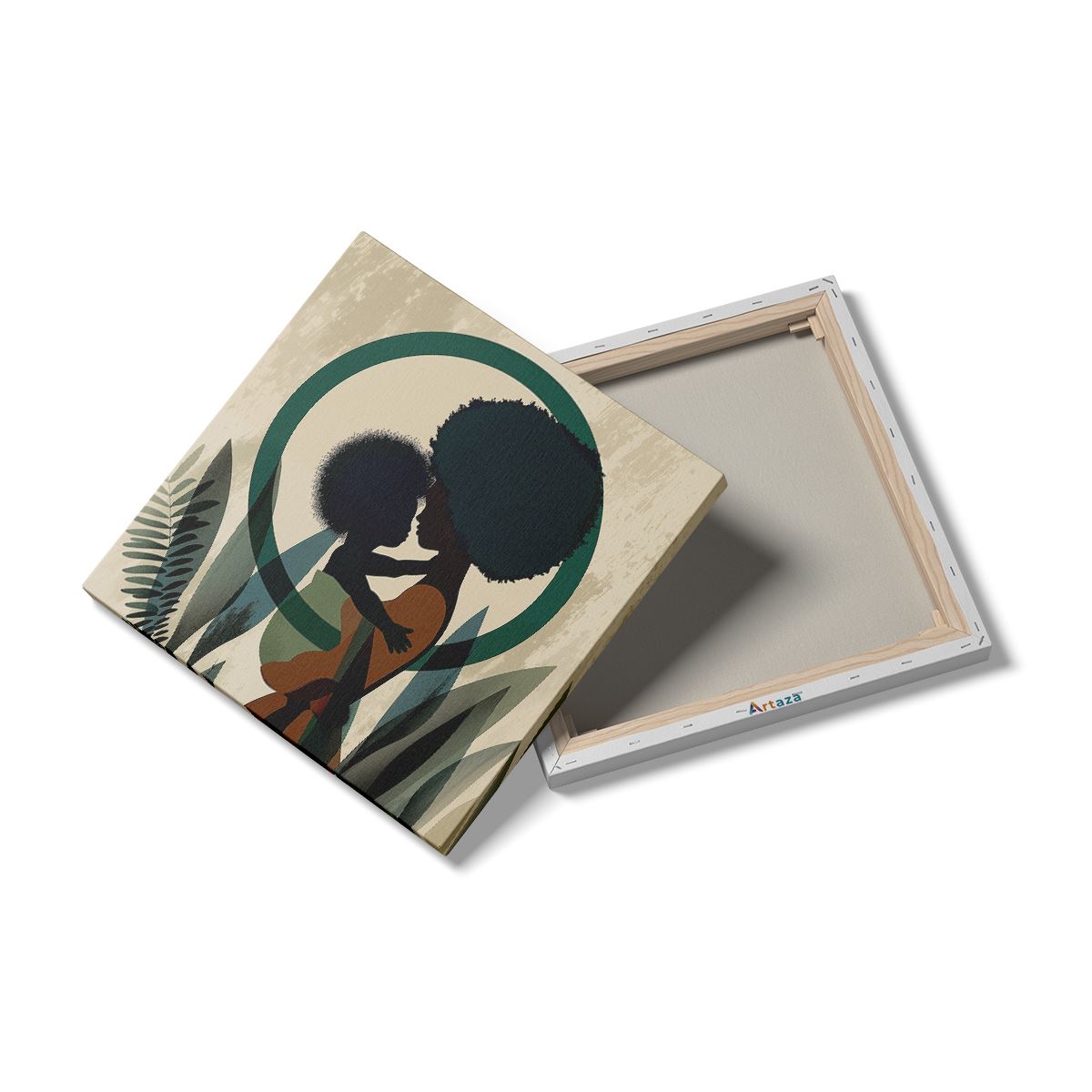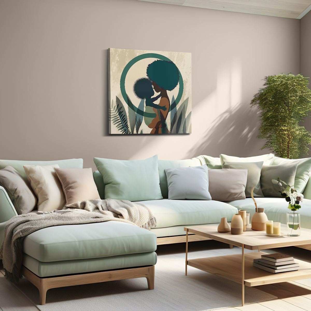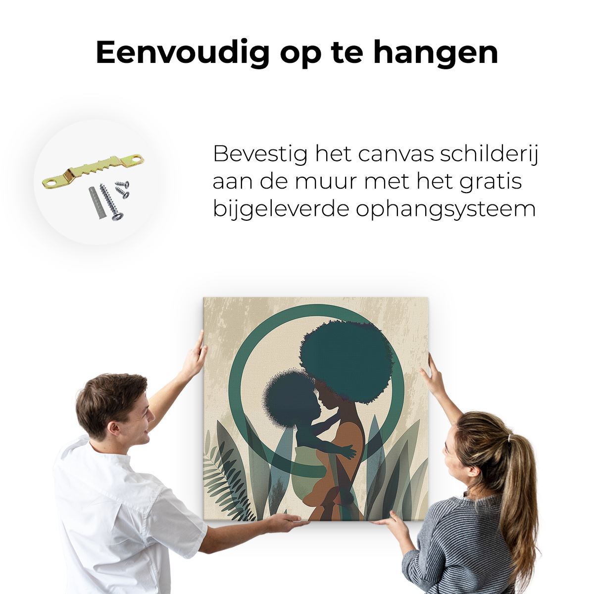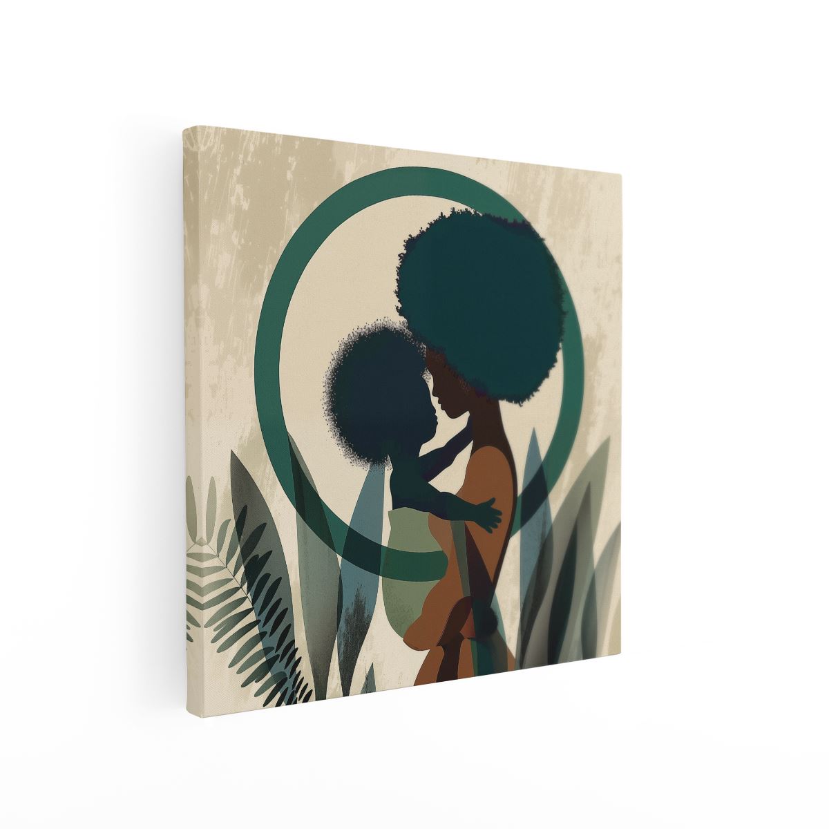 Schilderij Vrouw met Afrohaar Houdt een Baby in haar Armen