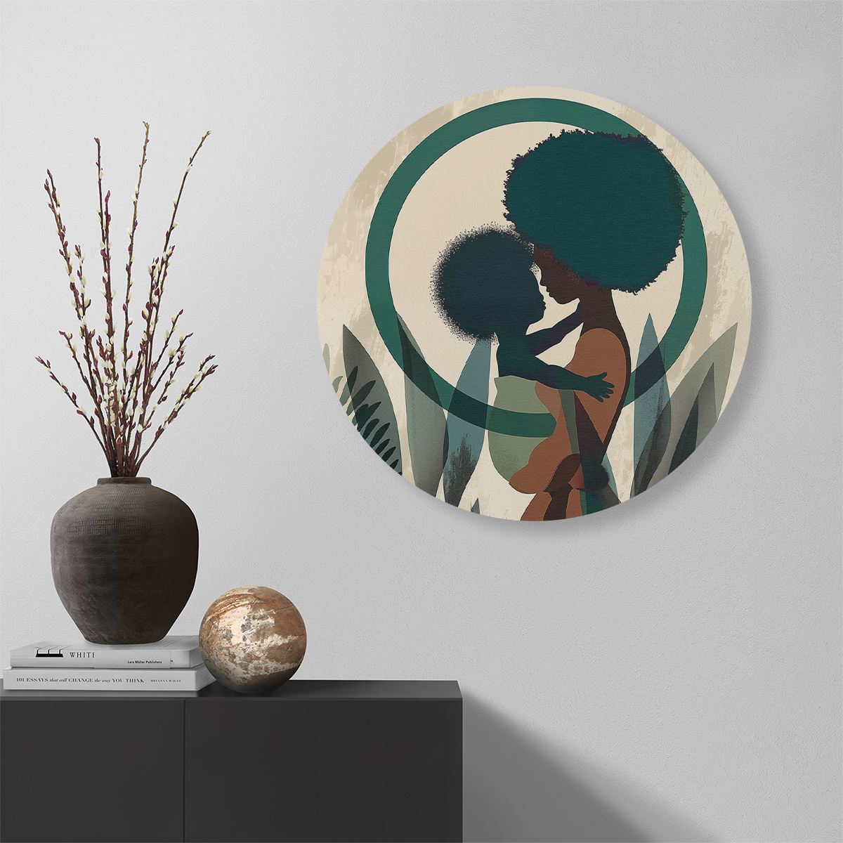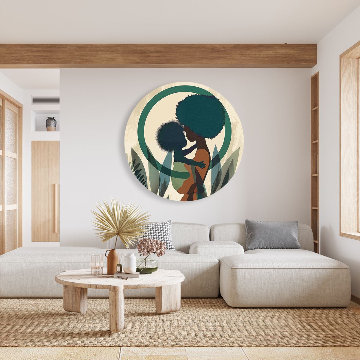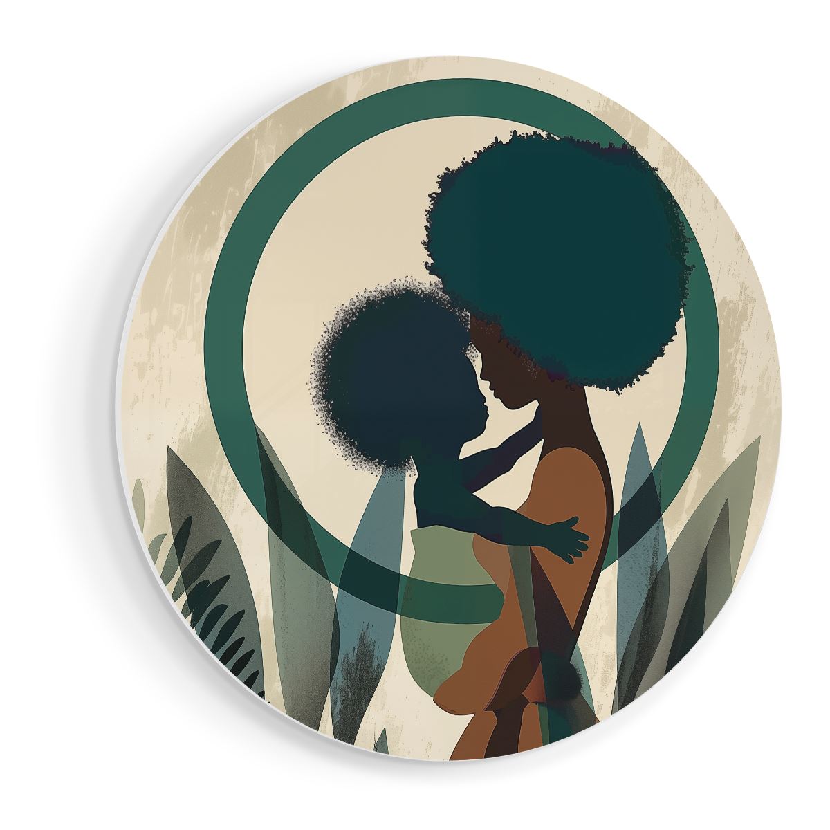 Wandcirkel Vrouw met Afrohaar Houdt een Baby in haar Armen