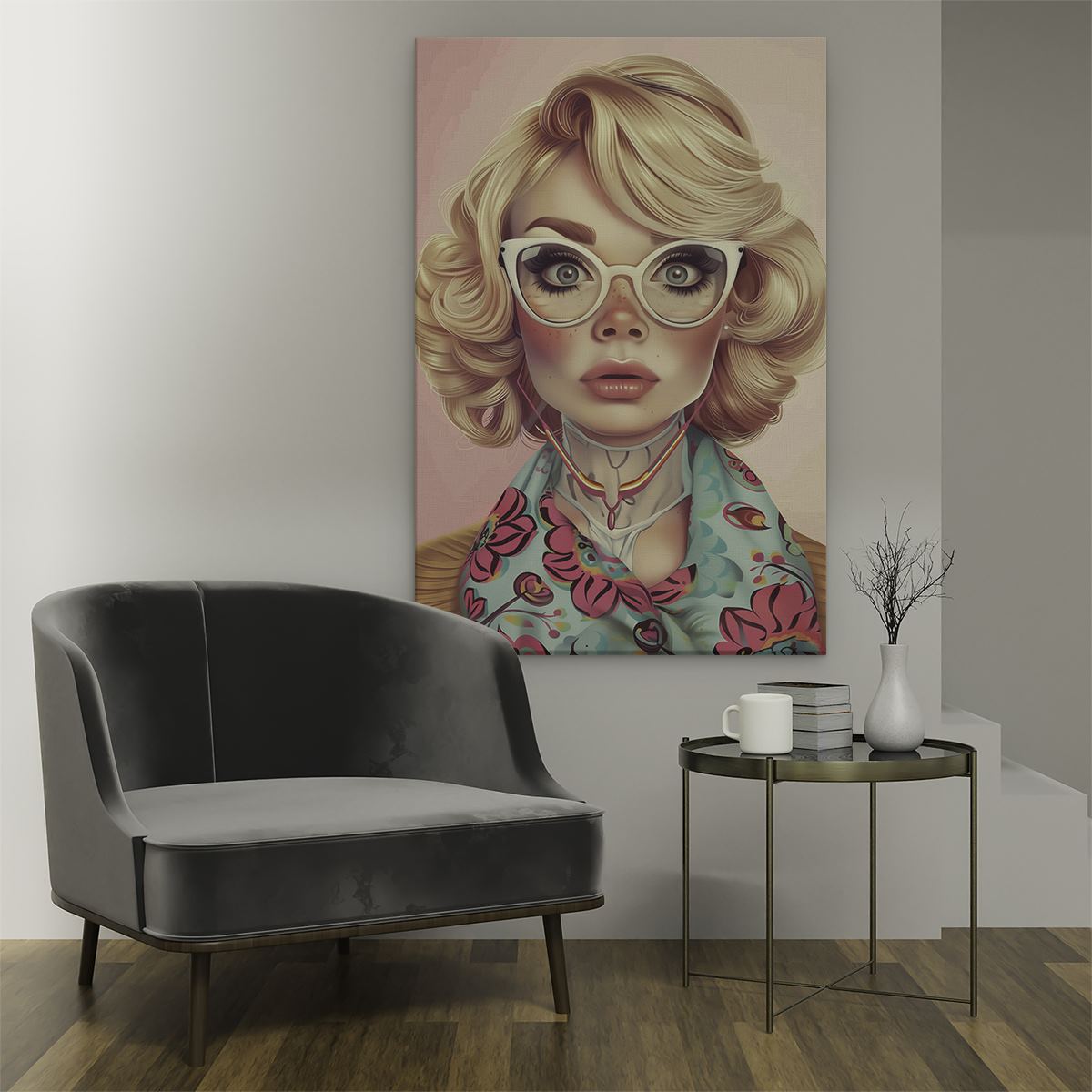 Schilderij Vrouw met Bril en een Sjaal