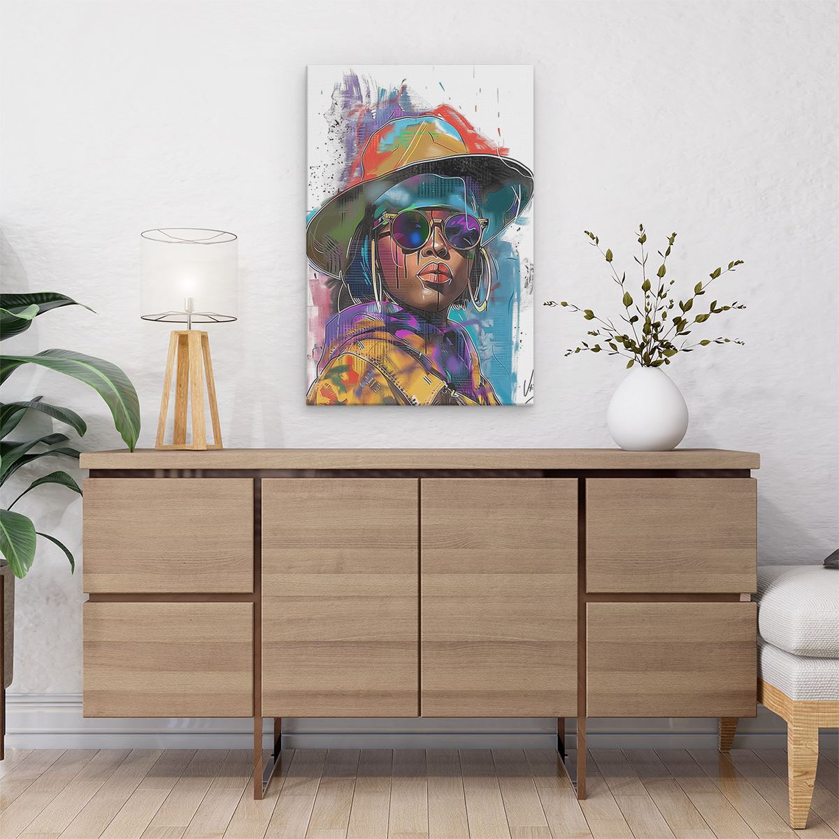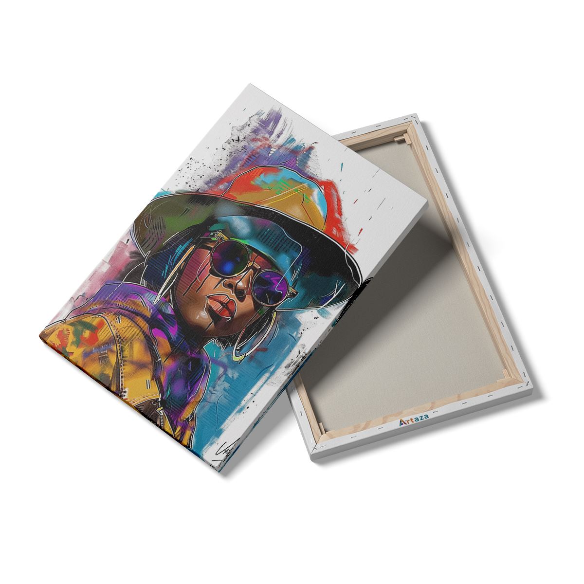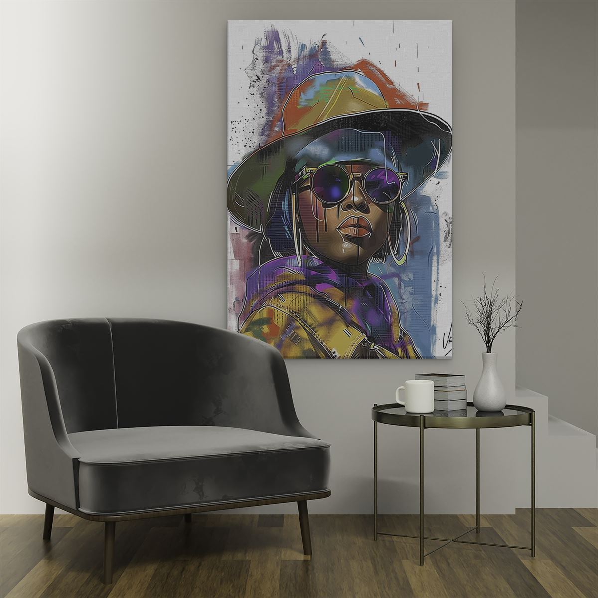 Schilderij Vrouw met een Hoed en een Zonnebril