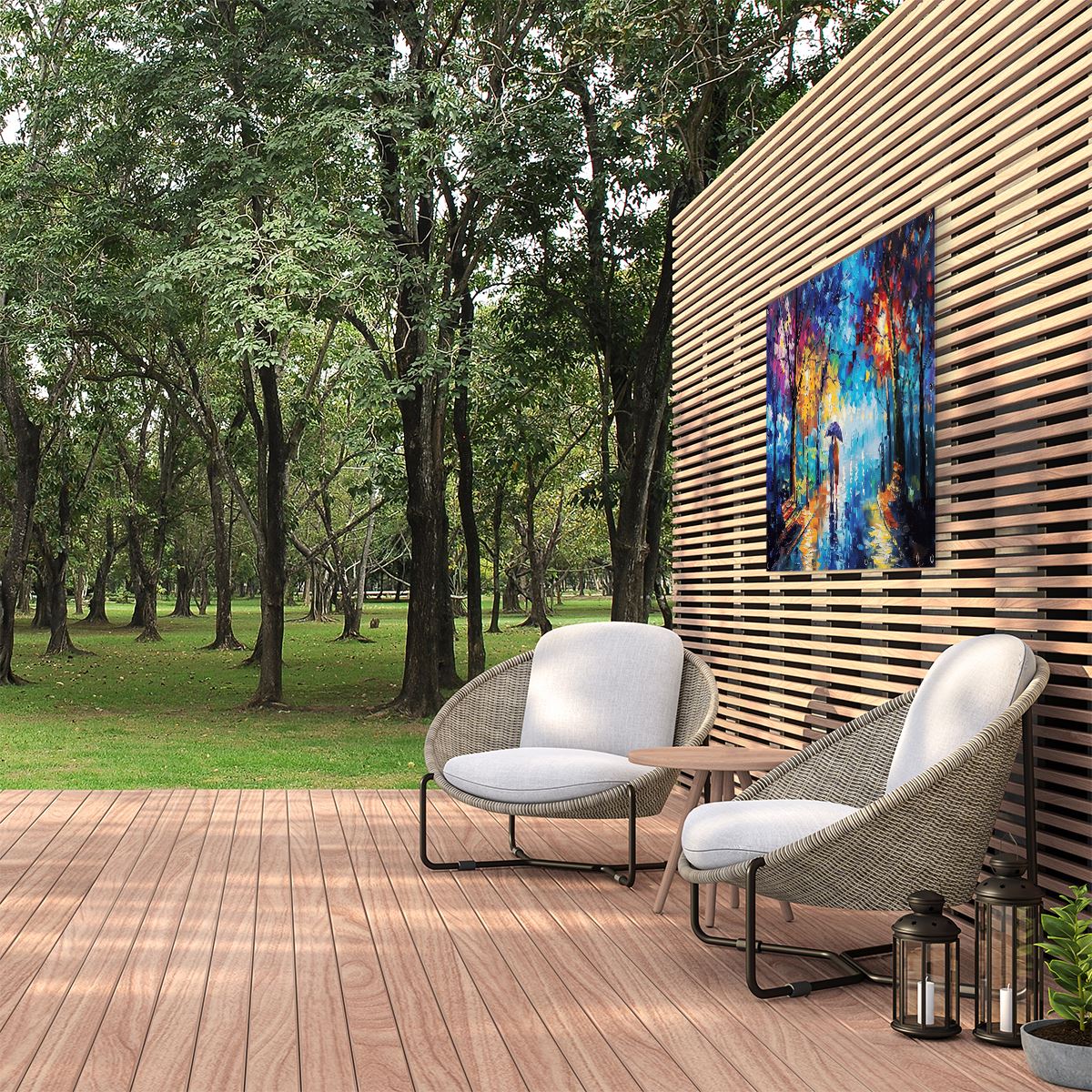 Tuinposter Vrouw met een Paraplu in de Regen