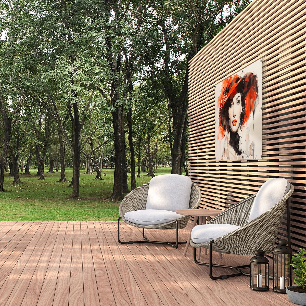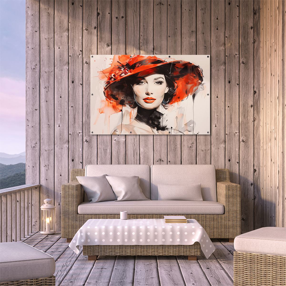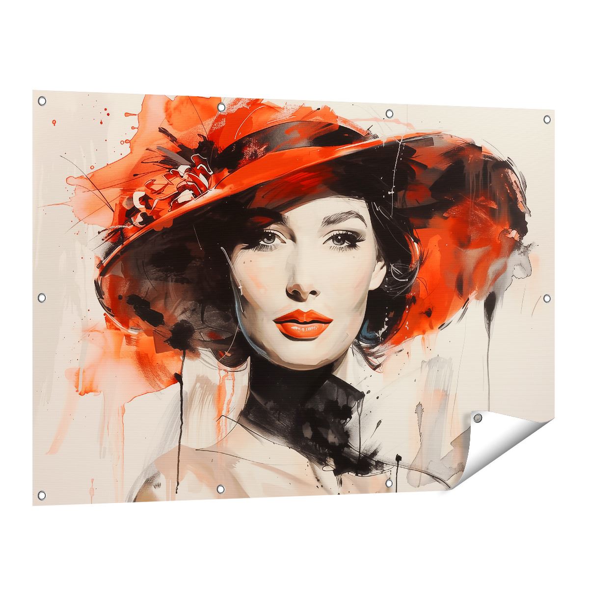 Tuinposter Vrouw met een Rode Hoed