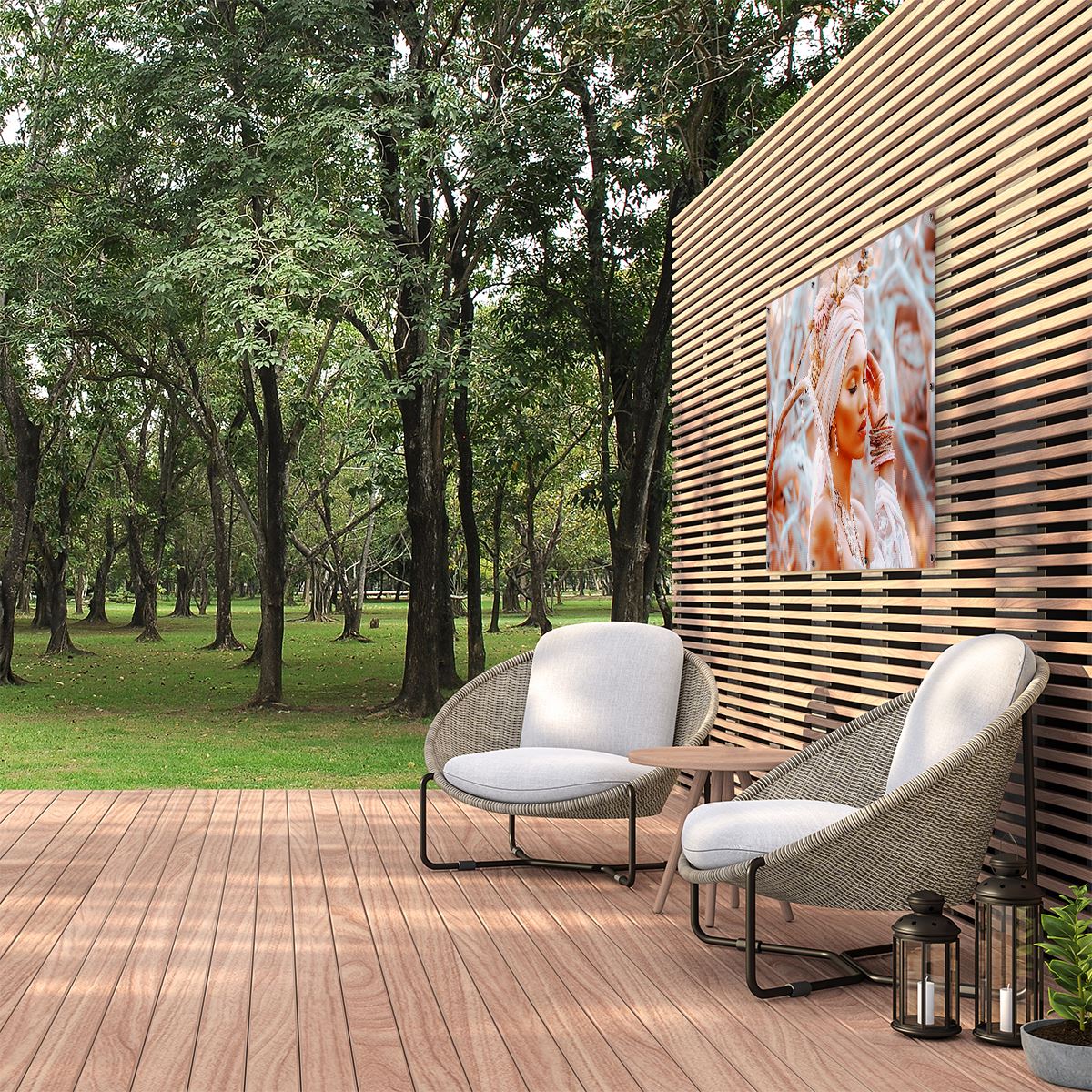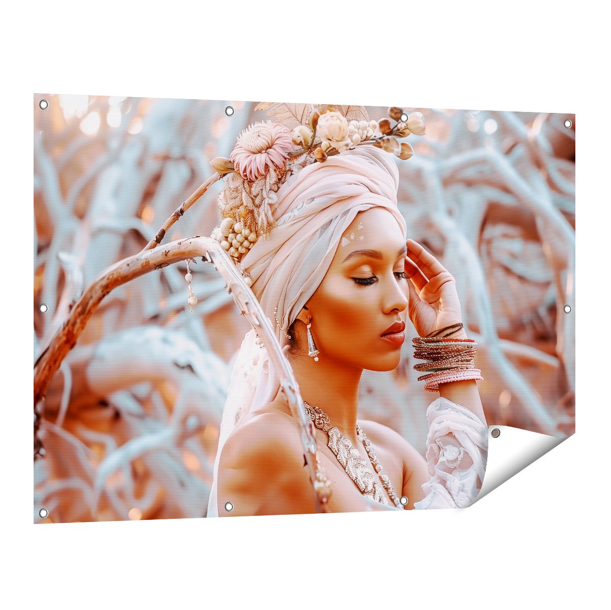 Tuinposter Vrouw met een Tulband en Sieraden
