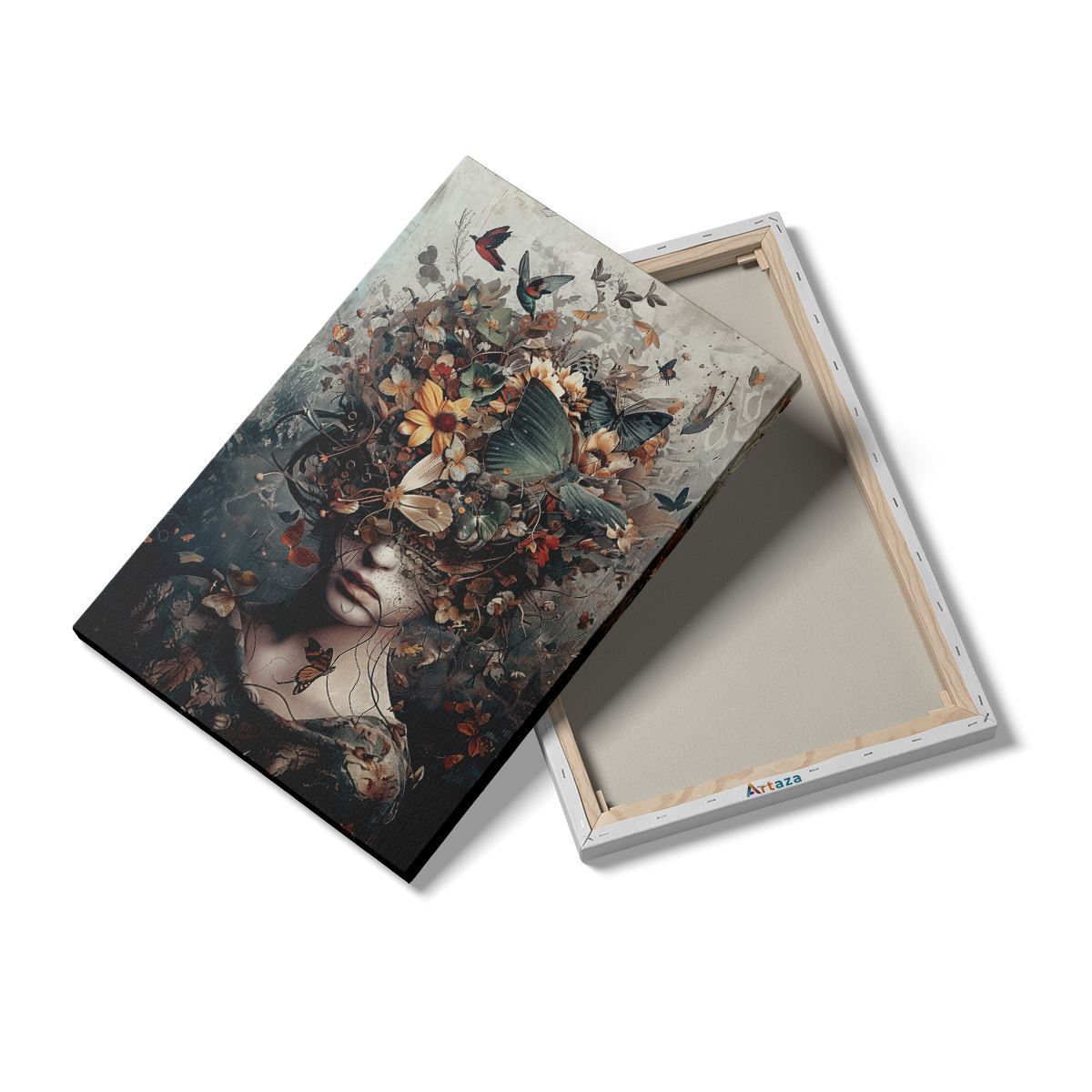 Schilderij Vrouw met Vlinders op haar Hoofd