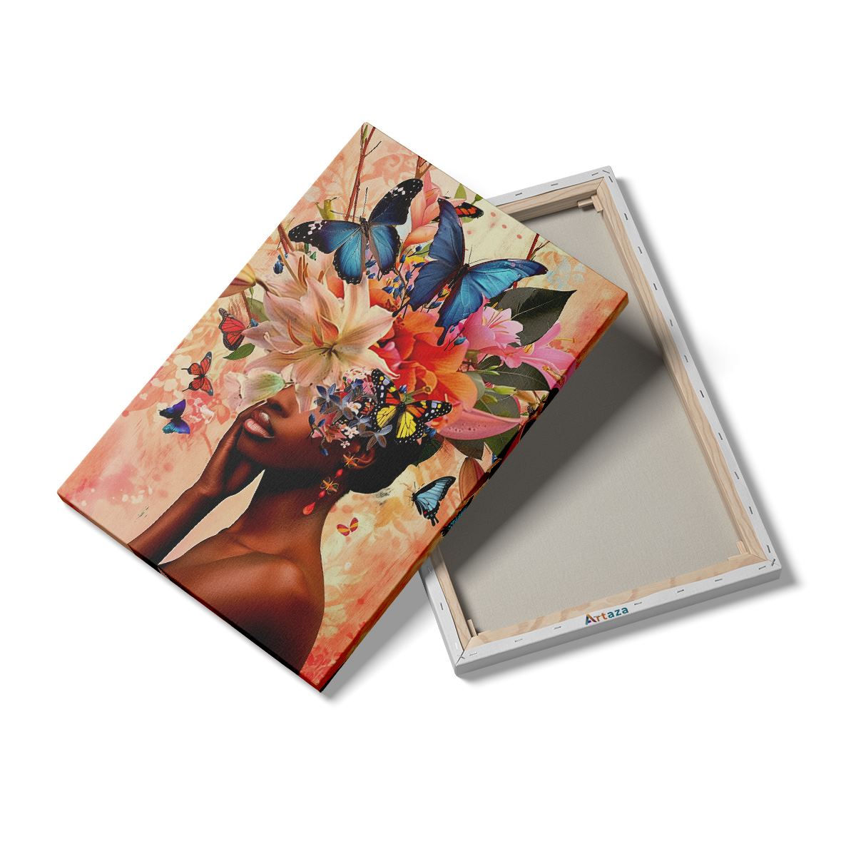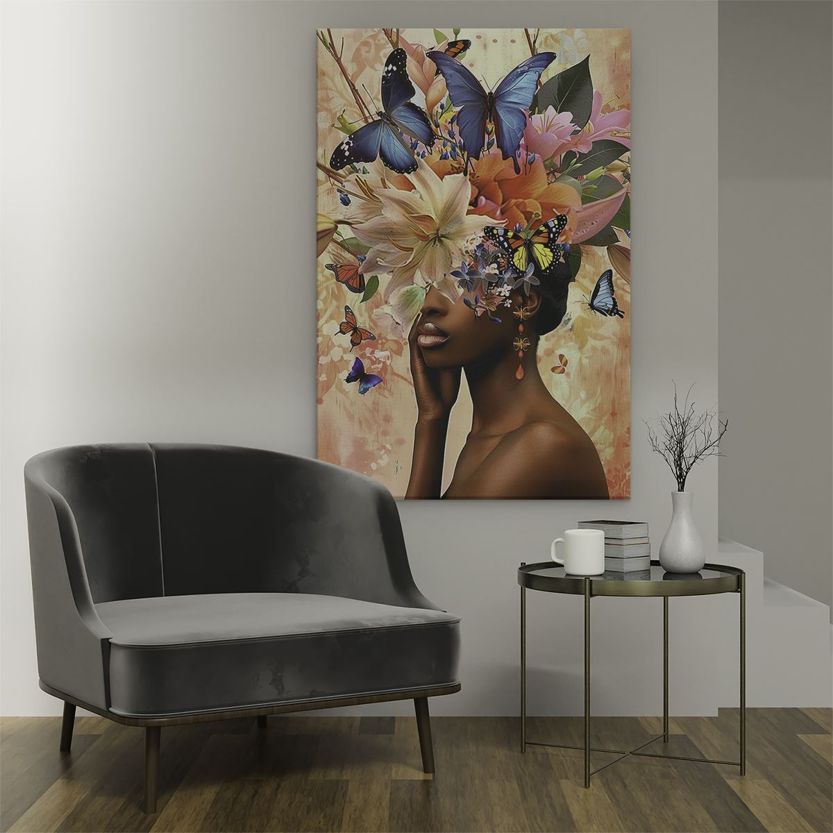 Schilderij Vrouw met Vlinders op haar Hoofd