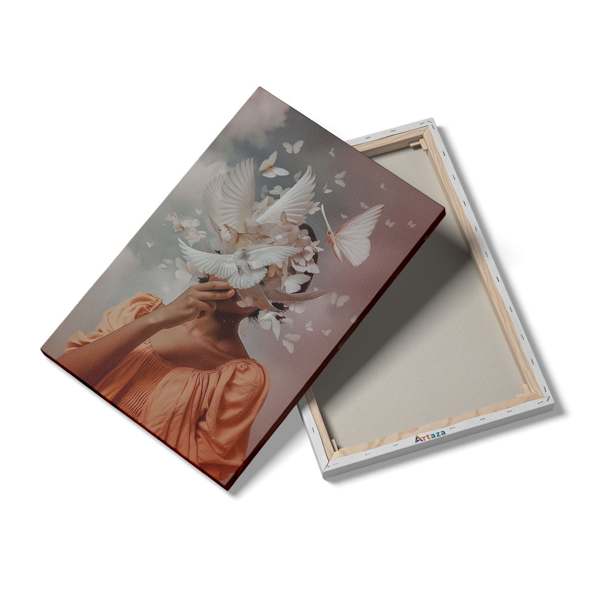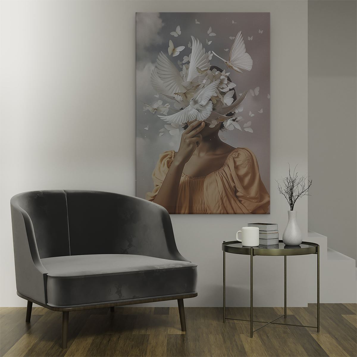 Schilderij Vrouw met Witte Duiven op haar Hoofd