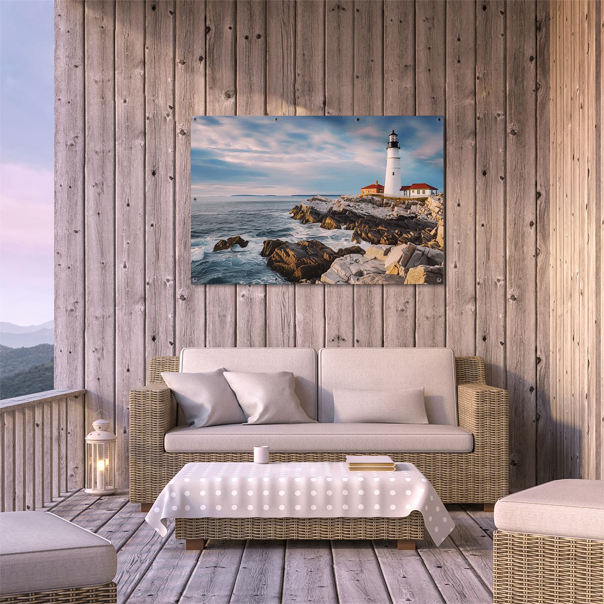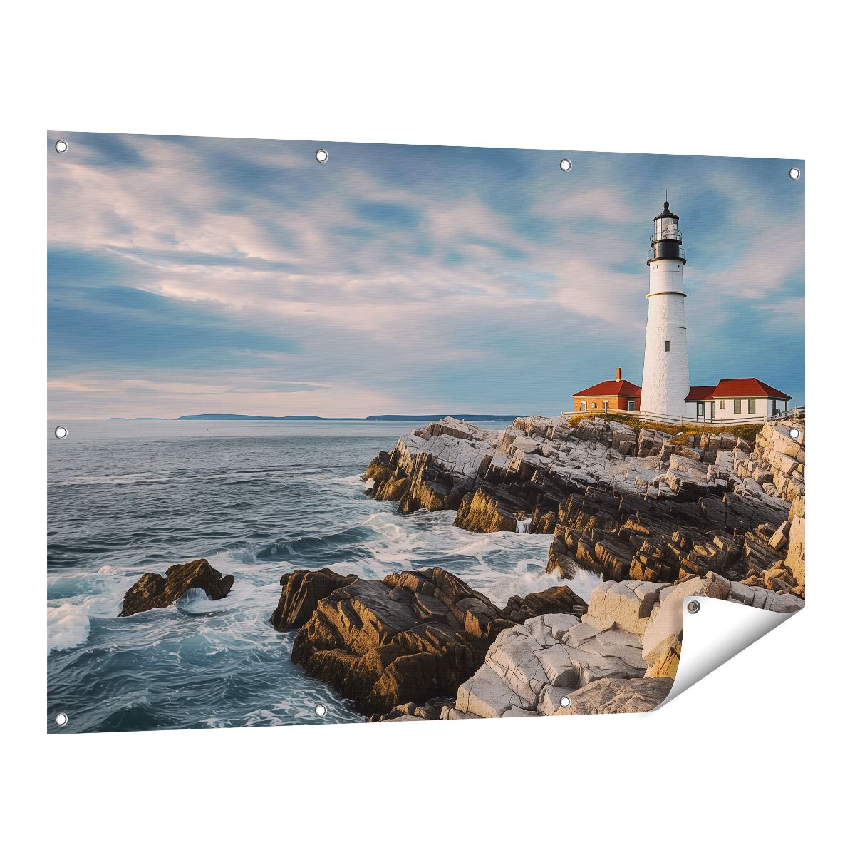 Tuinposter Vuurtoren op een Rotsachtige Kust
