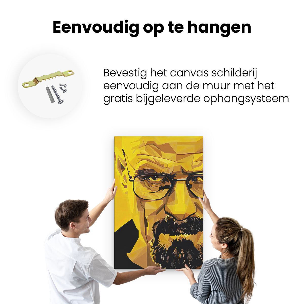 Bij aankoop ontvang je een meegeleverd ophangsysteem, zodat je op een simpele en snelle wijze het schilderij boven de bank of bed kan monteren.