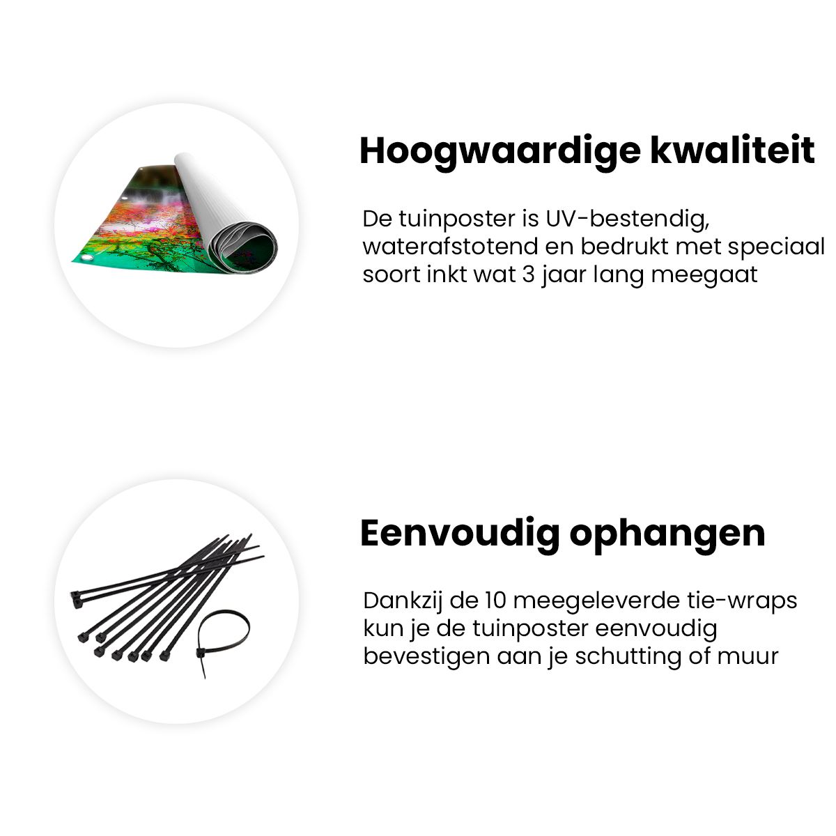 Bij aankoop ontvang je een meegeleverd ophangsysteem, zodat je op een simpele en snelle wijze de tuinposter kan ophangen.