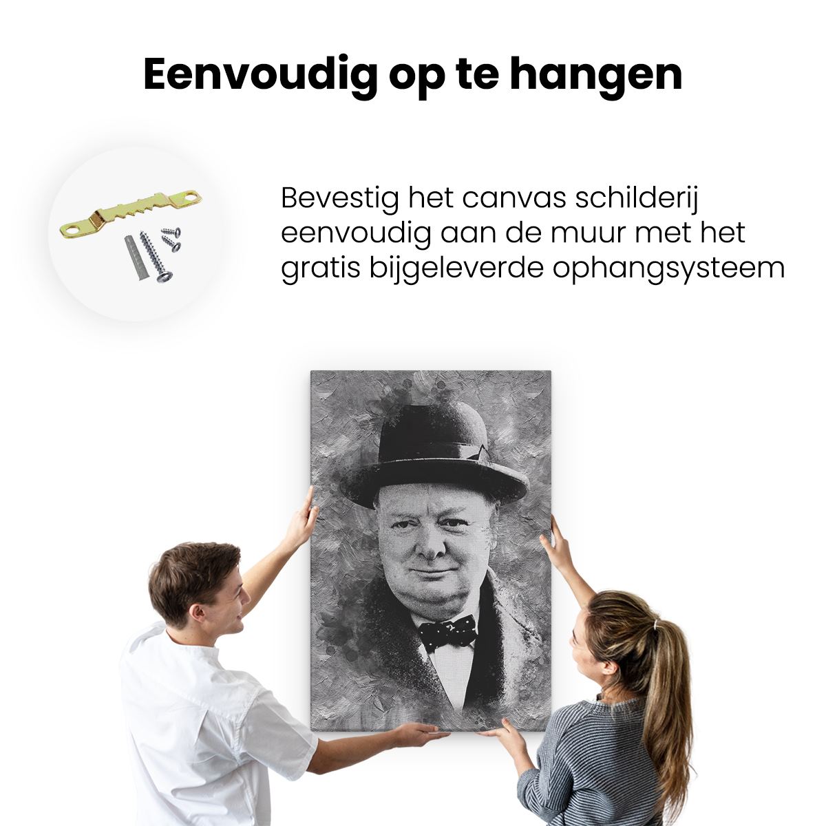 Bij aankoop ontvang je een meegeleverd ophangsysteem, zodat je op een simpele en snelle wijze het schilderij boven de bank of bed kan monteren.