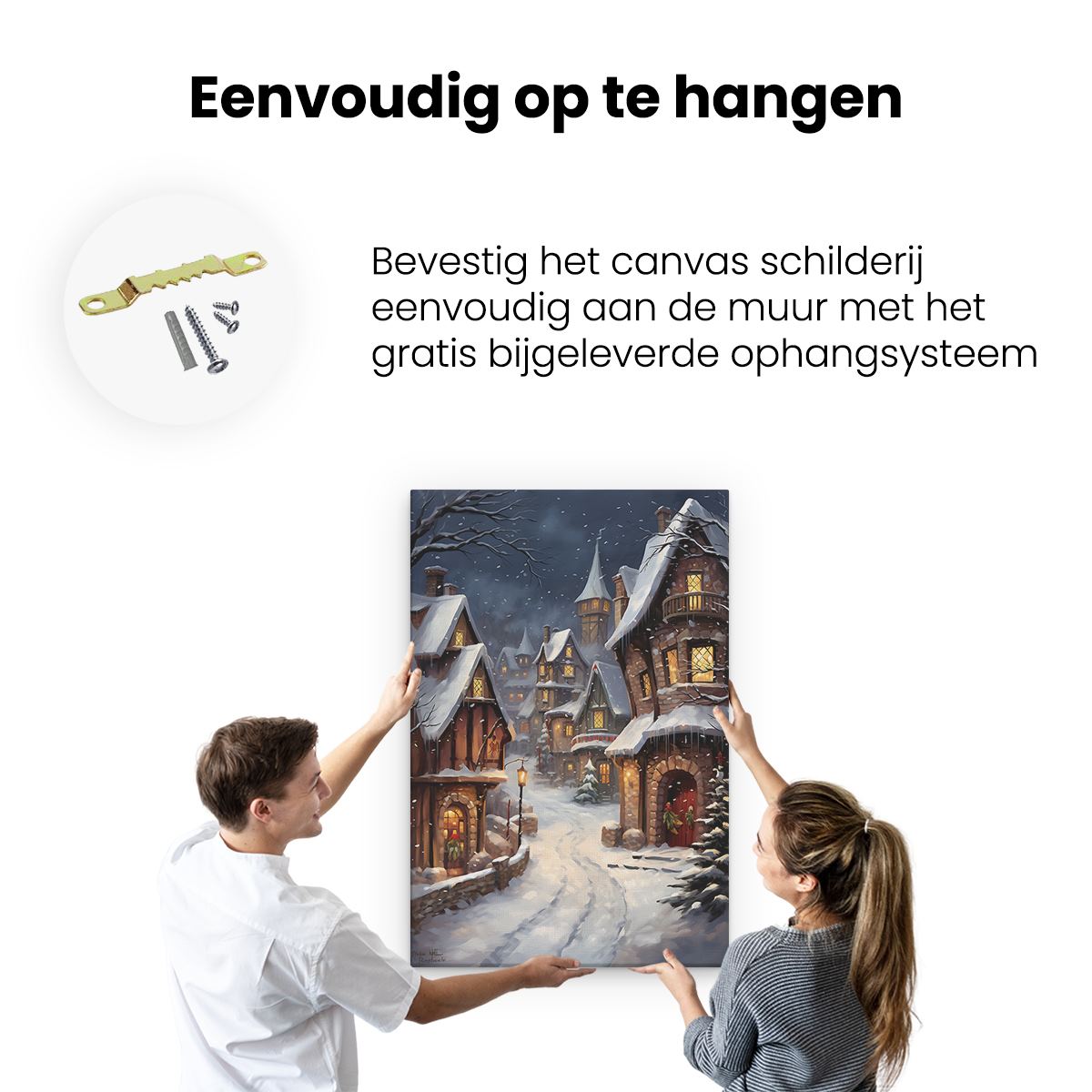Bij aankoop ontvang je een meegeleverd ophangsysteem, zodat je op een simpele en snelle wijze het schilderij boven de bank of bed kan monteren.