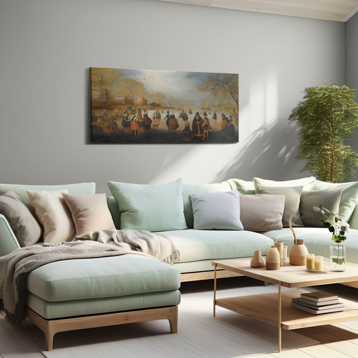Schilderij Winterlandschap met Schaatsers - Adam van Breen