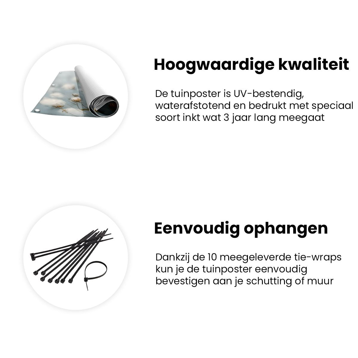 Bij aankoop ontvang je een meegeleverd ophangsysteem, zodat je op een simpele en snelle wijze de tuinposter kan ophangen.