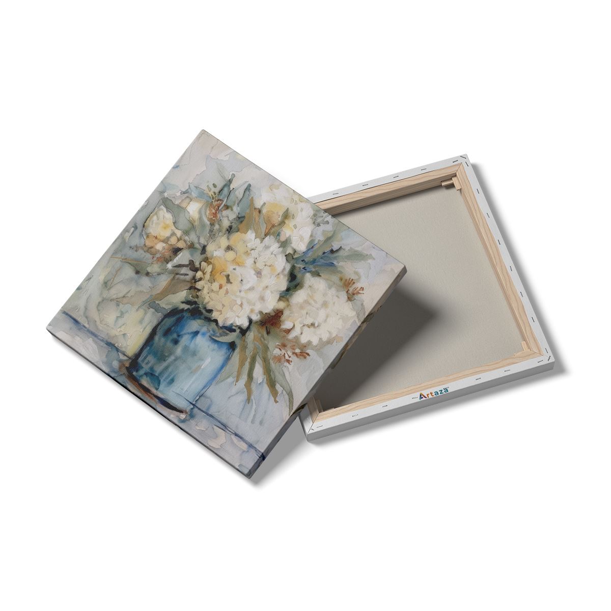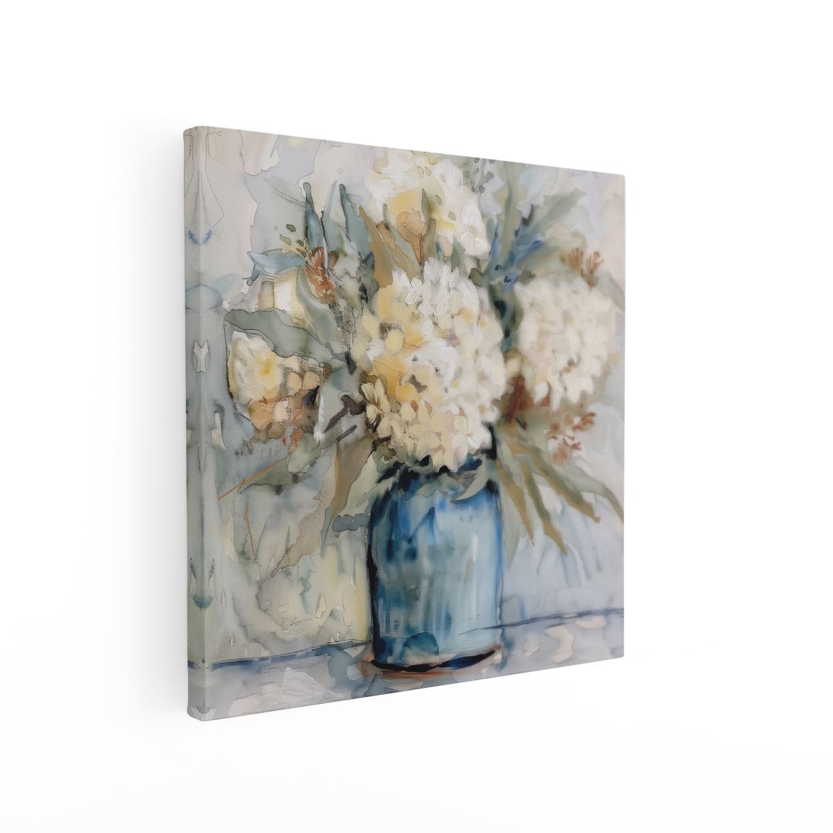 Schilderij Witte Bloemen in een Blauwe Vaas