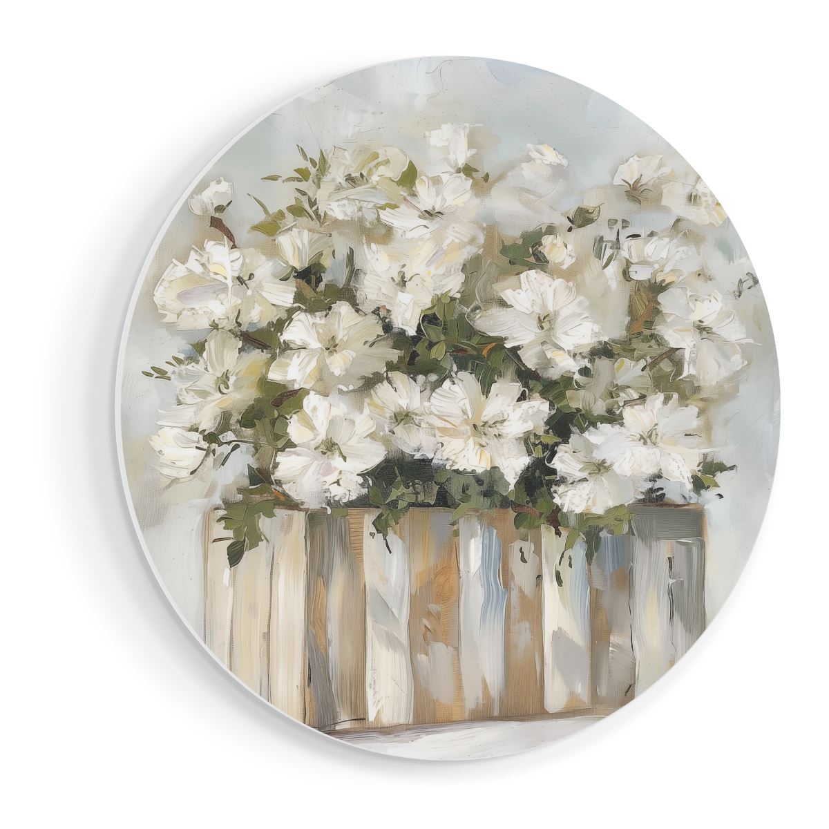 Wandcirkel Witte Bloemen in een Houten Kist
