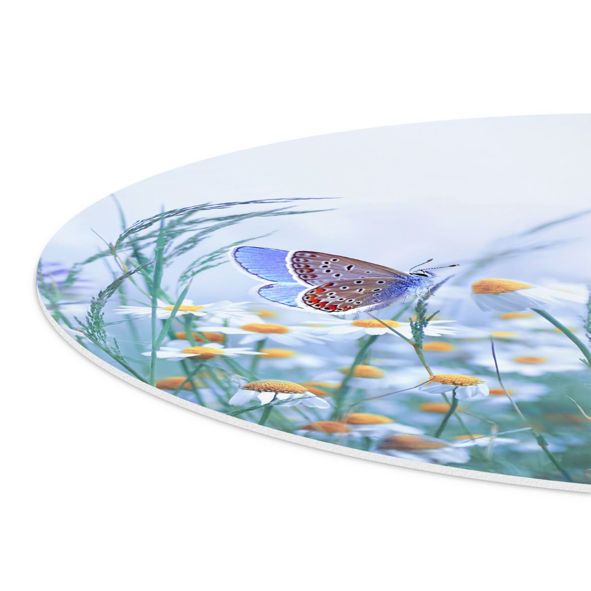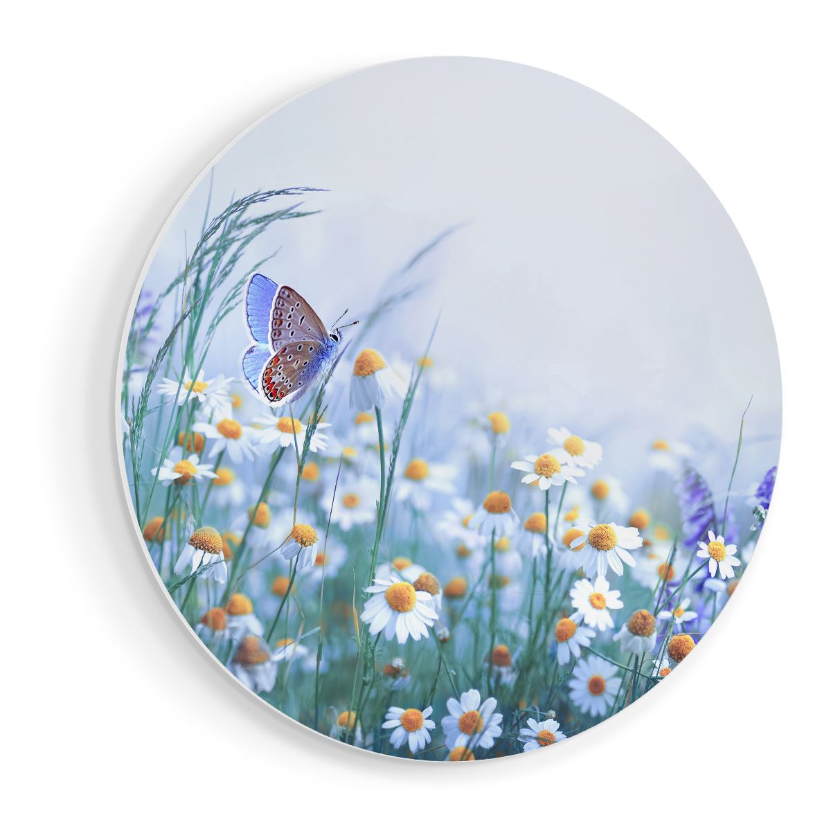 Wandcirkel Witte Kamille Bloemen Met Een Vlinder