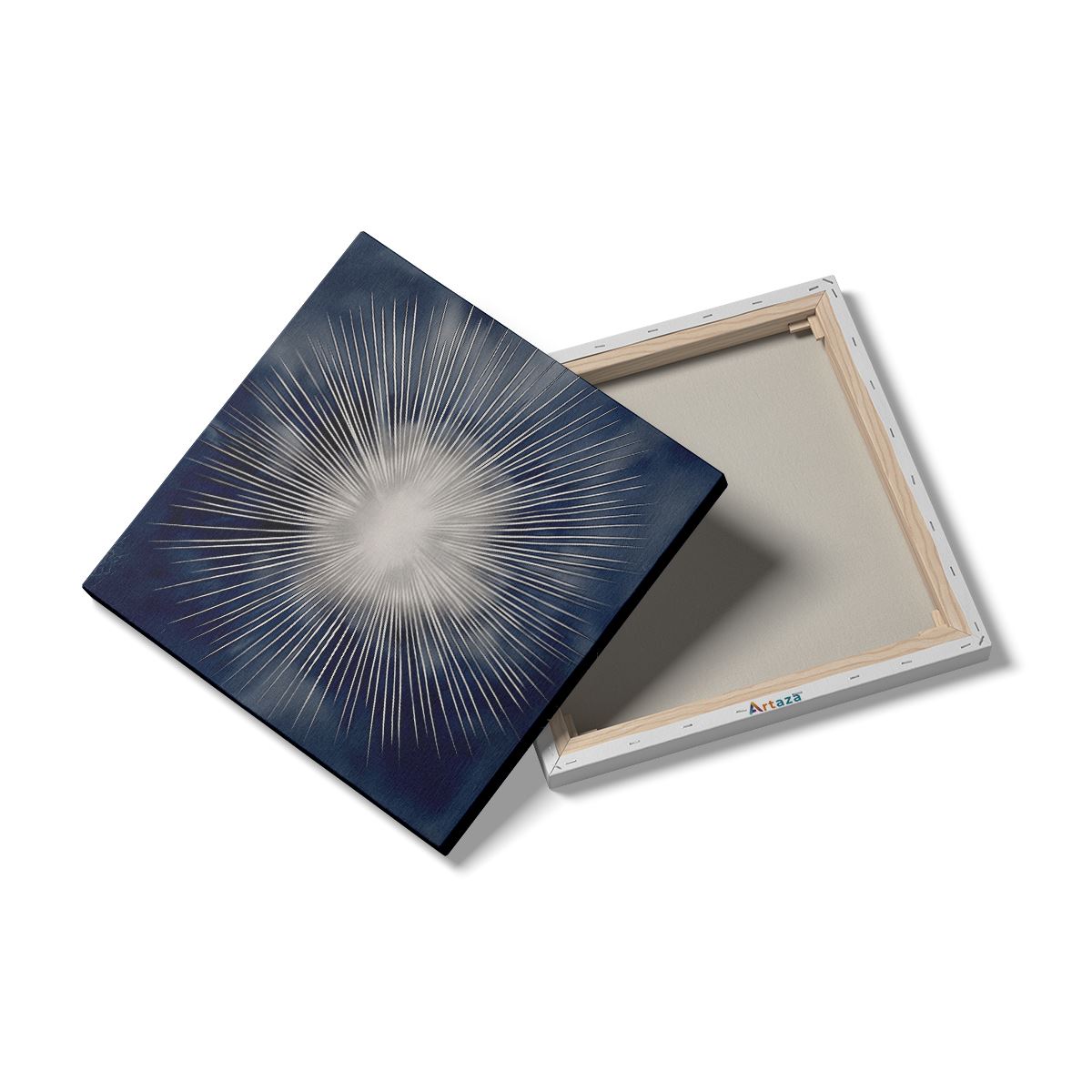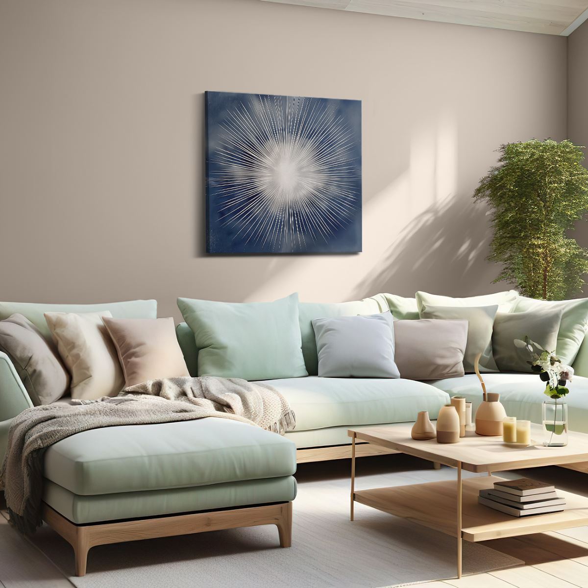 Schilderij Witte Zonnestraal op een Blauwe Achtergrond