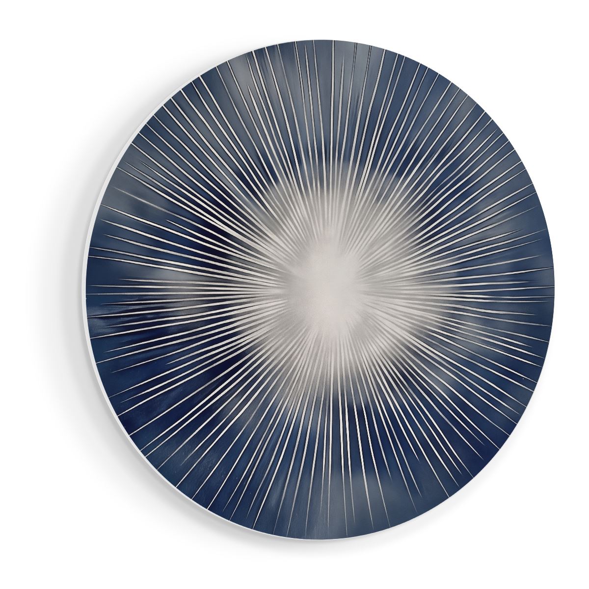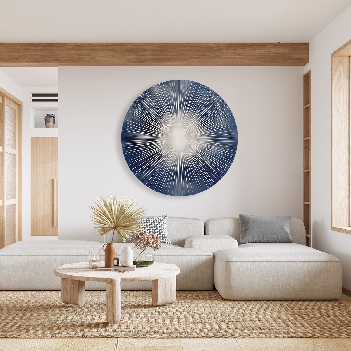 Wandcirkel Witte Zonnestraal op een Blauwe Achtergrond