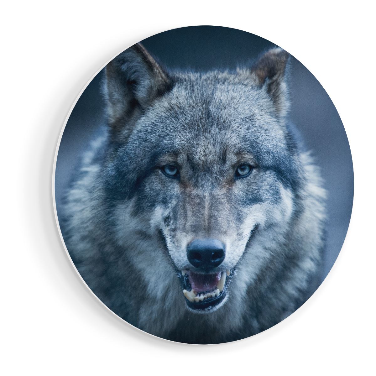 Wandcirkel Wolvenkop Met Blauwe Ogen - Wolf