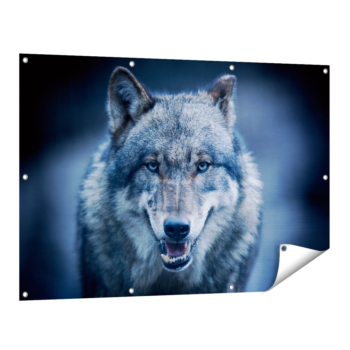 Tuinposter Wolvenkop Met Blauwe Ogen - Wolf
