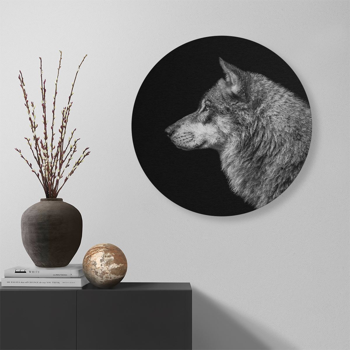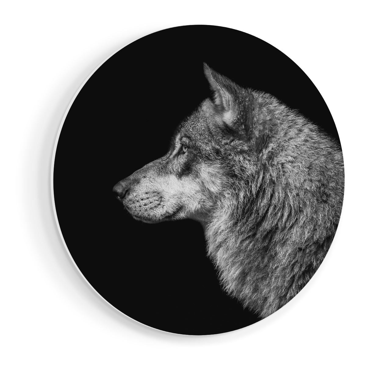 Wandcirkel Wolvenkop - Wolf - Zwart Wit
