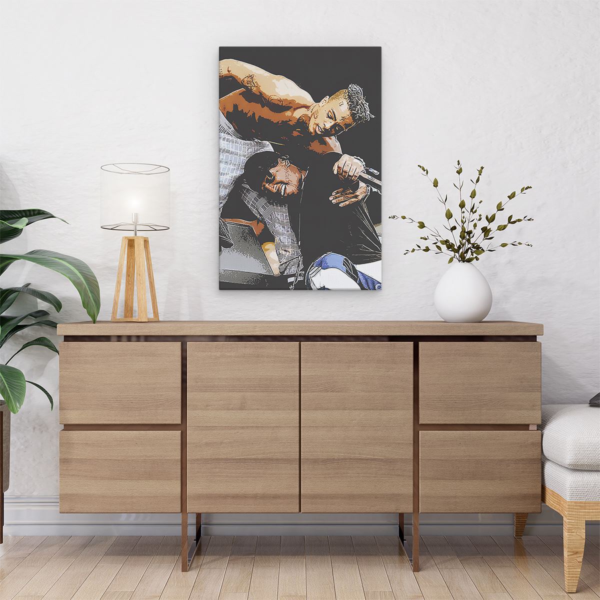 Bij aankoop ontvang je een meegeleverd ophangsysteem, zodat je op een simpele en snelle wijze het schilderij boven de bank of bed kan monteren.