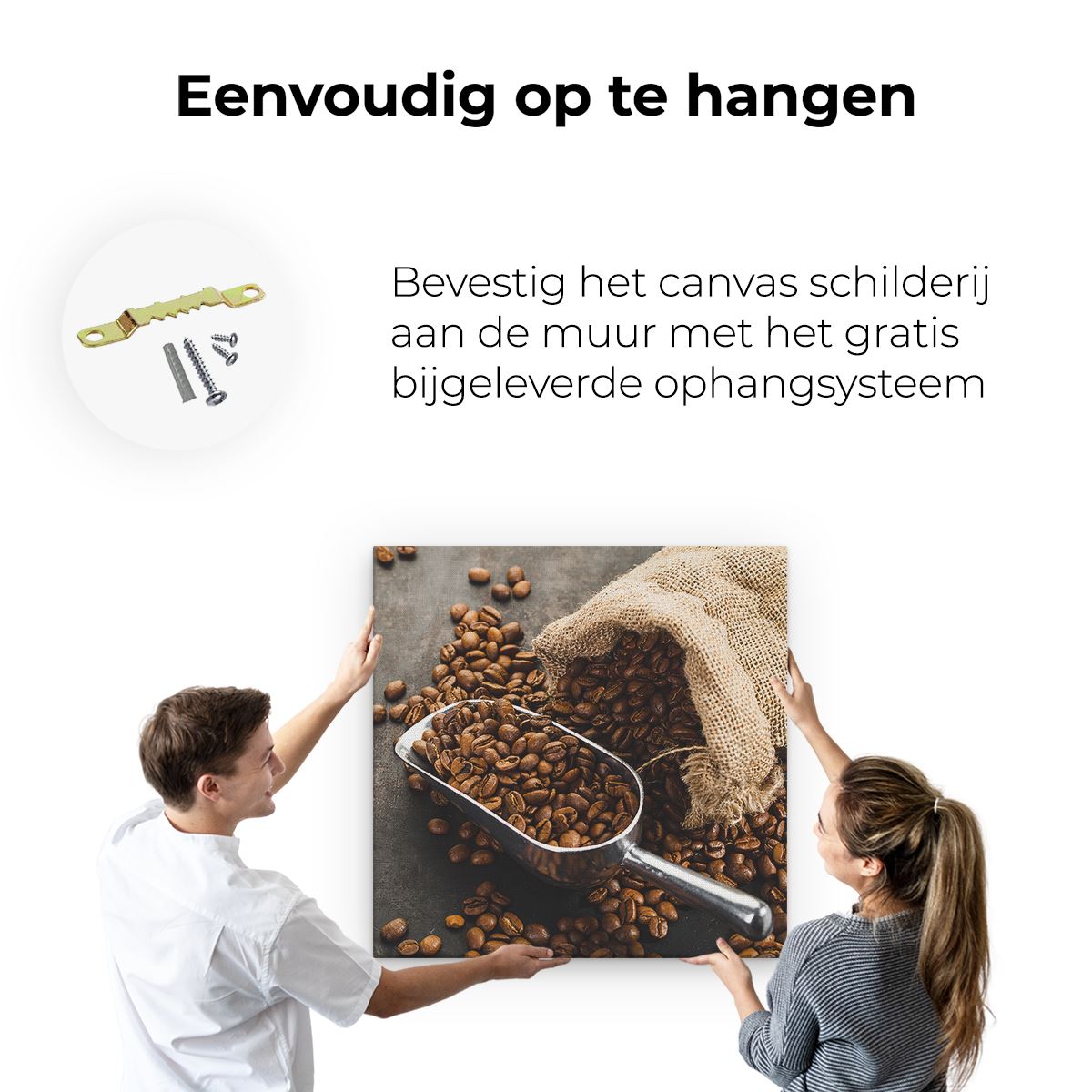 Bij aankoop ontvang je een meegeleverd ophangsysteem, zodat je op een simpele en snelle wijze het schilderij boven de bank of bed kan monteren.