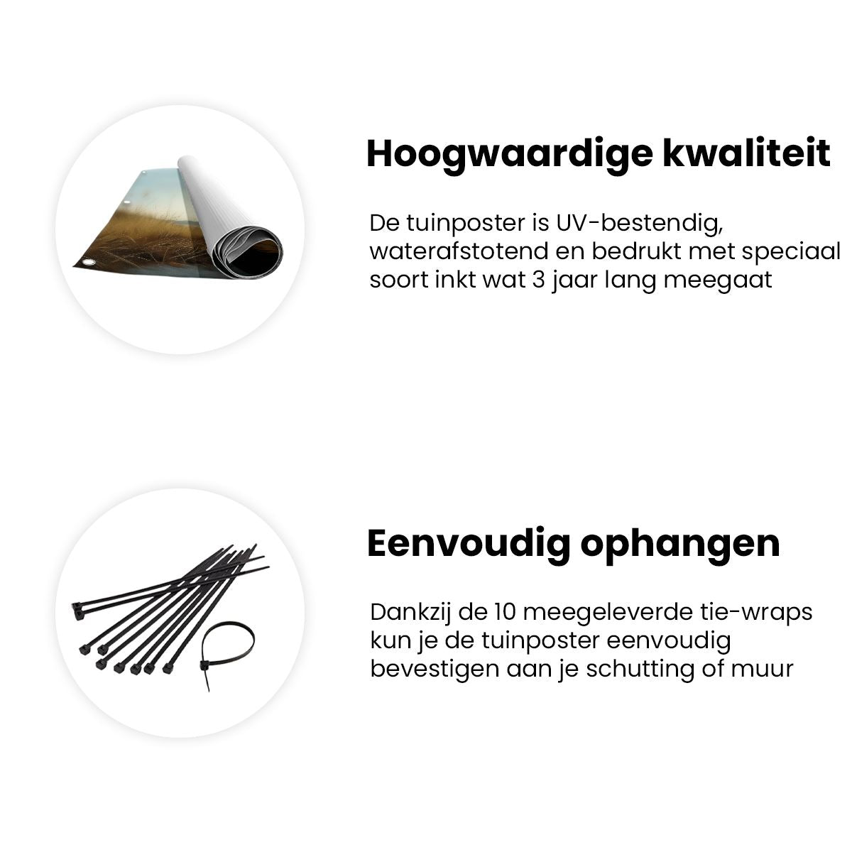 Bij aankoop ontvang je een meegeleverd ophangsysteem, zodat je op een simpele en snelle wijze de tuinposter kan ophangen.