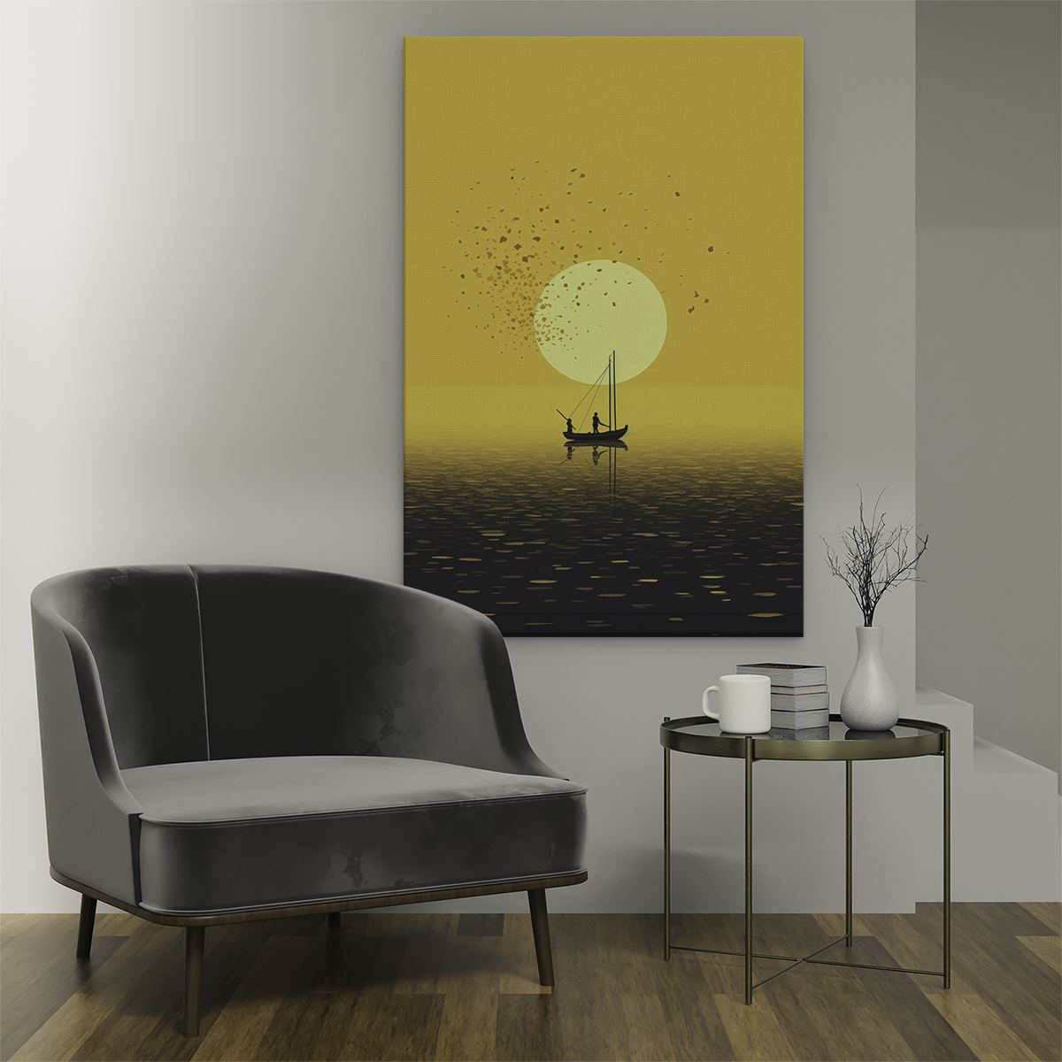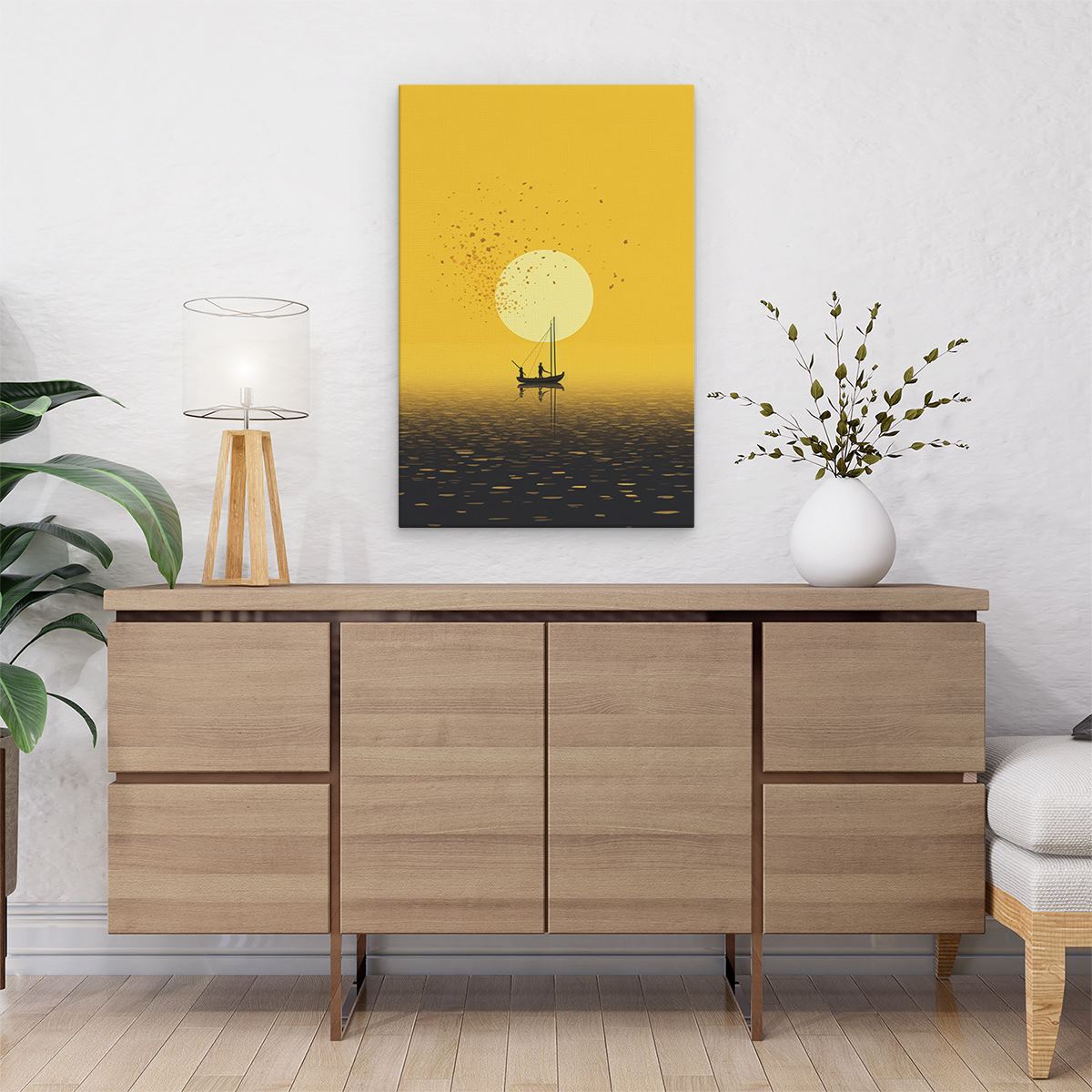 Schilderij Zeilboot bij Zonsopkomst - Abstract