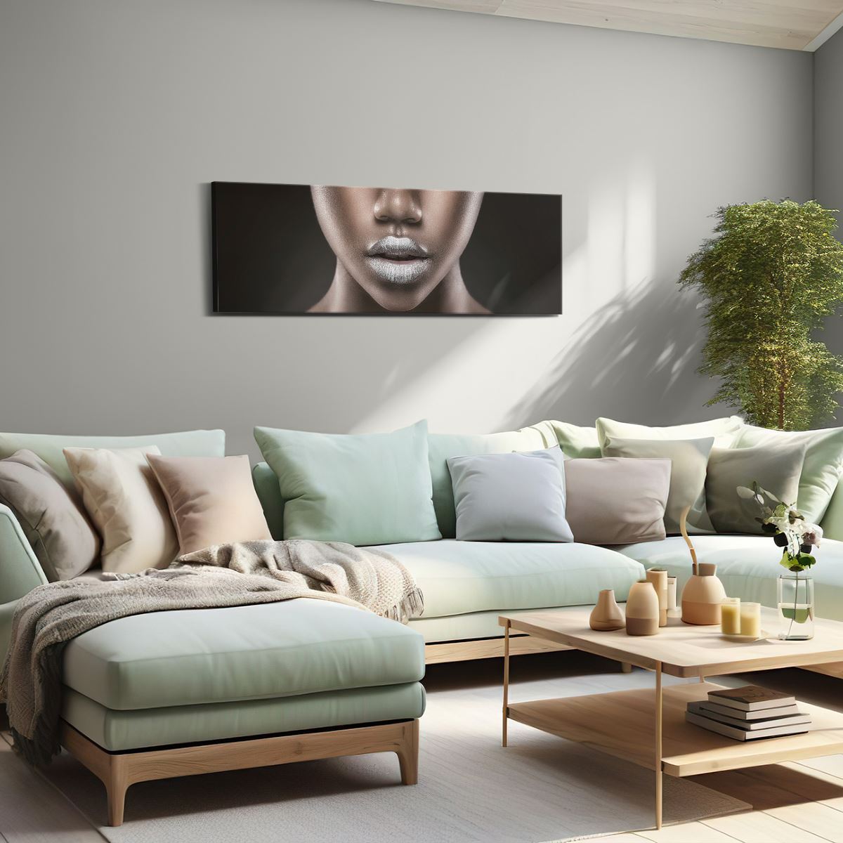 Schilderij Zilveren Lippen Van Een Afrikaanse Vrouw