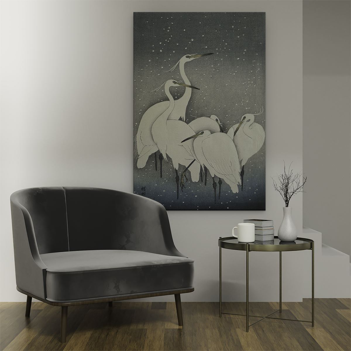 Schilderij Zilverreigers in de Sneeuw - Ohara Koson