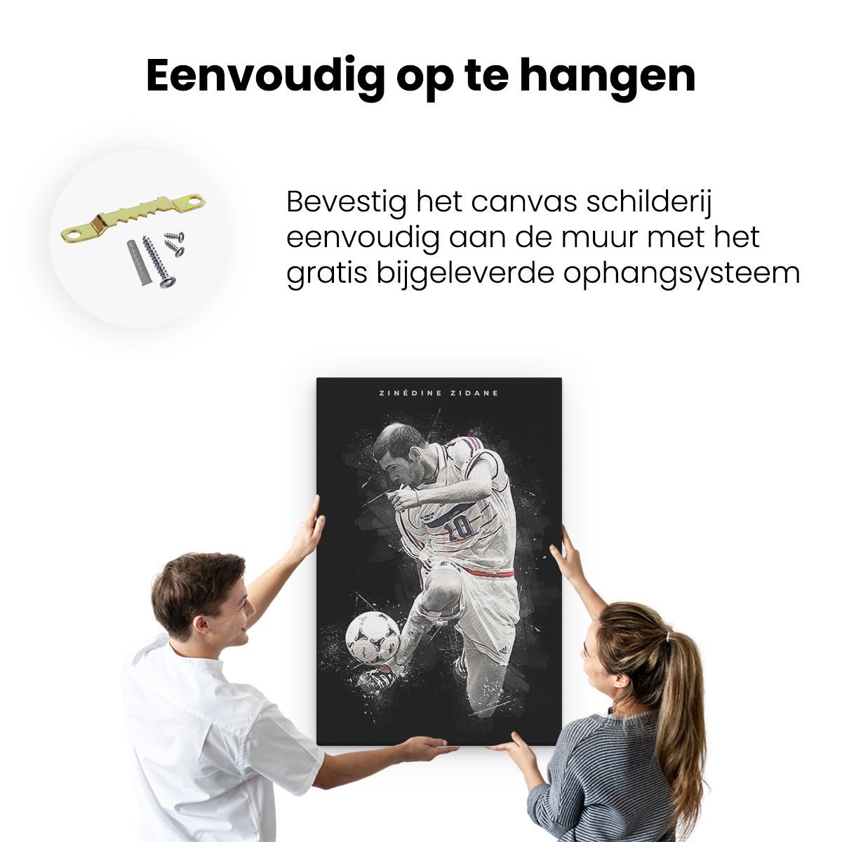 Bij aankoop ontvang je een meegeleverd ophangsysteem, zodat je op een simpele en snelle wijze het schilderij boven de bank of bed kan monteren.
