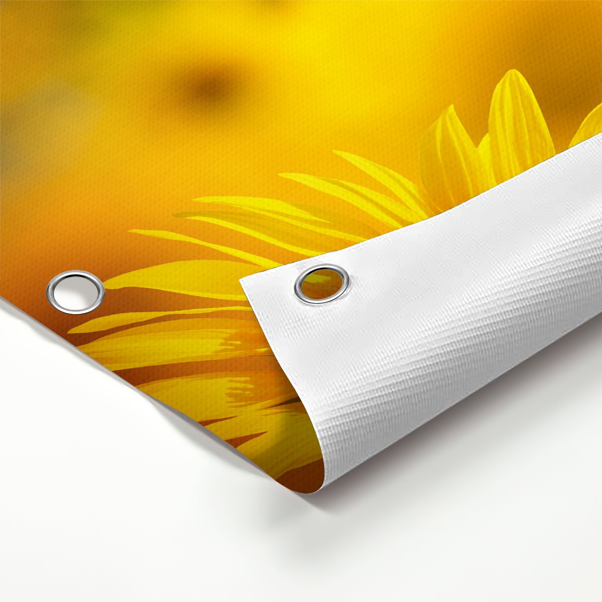Tuinposter Zonnebloemen Veld Met Zonopkomst