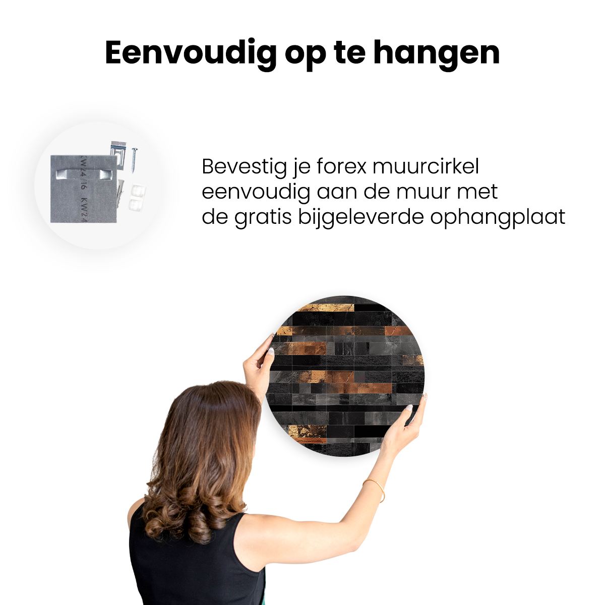 Gebruik het meegeleverde bevestigingsmateriaal om de wandcirkel aan de meeste wanden om te kunnen hangen. Een schroef en plug leveren we mee.