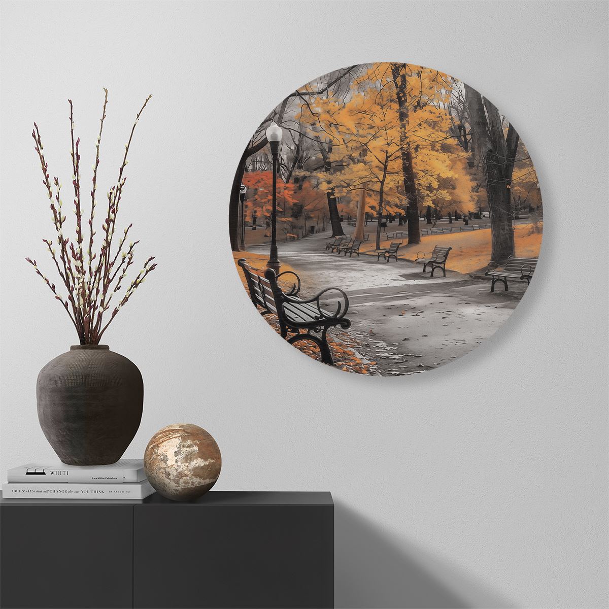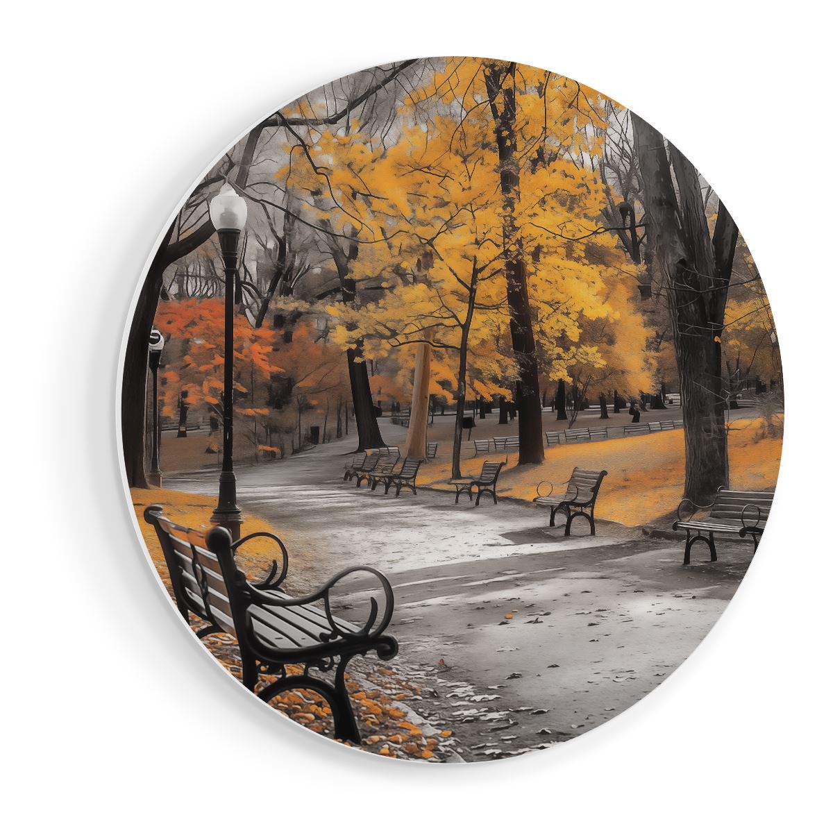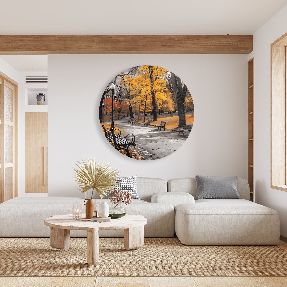 Wandcirkel Zwart Wit Beeld van Bankjes in een Park