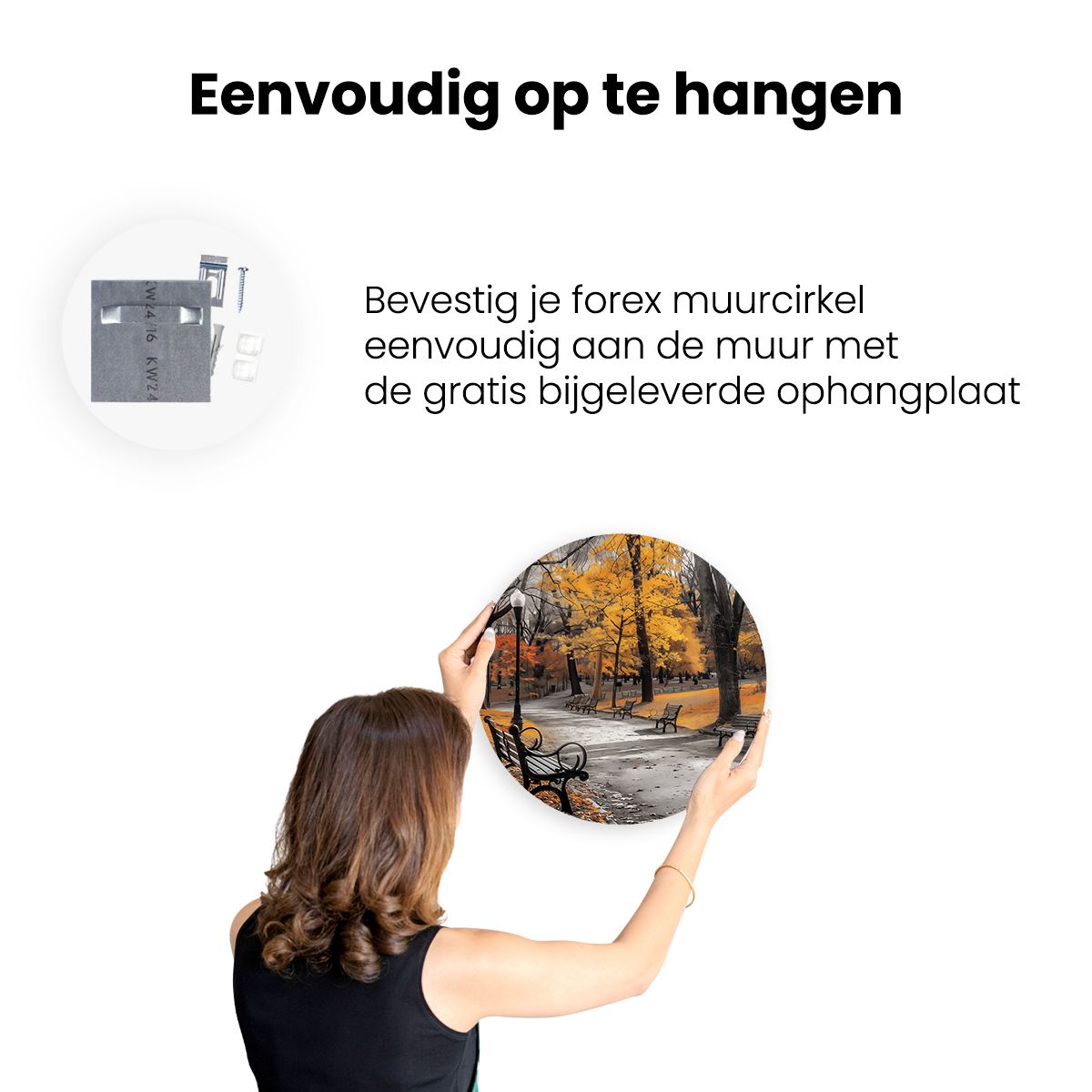 Gebruik het meegeleverde bevestigingsmateriaal om de wandcirkel aan de meeste wanden om te kunnen hangen. Een schroef en plug leveren we mee.