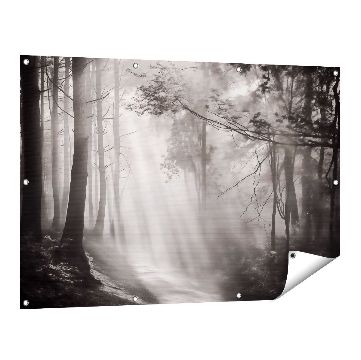 Tuinposter Zwart Wit Beeld van een Mistig Bos