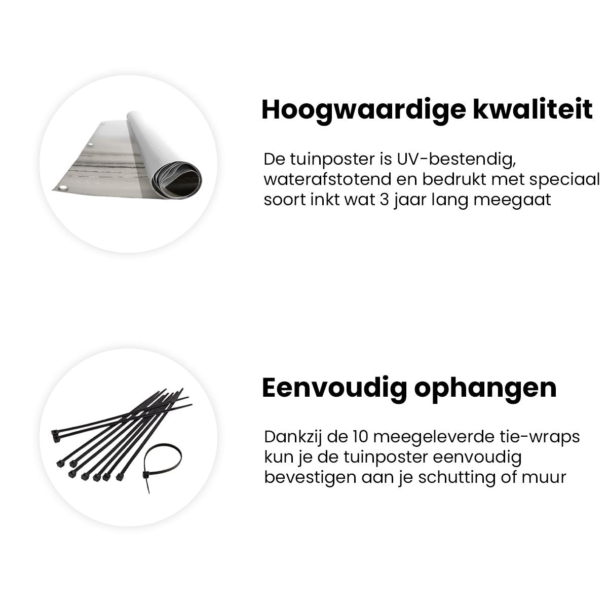 Bij aankoop ontvang je een meegeleverd ophangsysteem, zodat je op een simpele en snelle wijze de tuinposter kan ophangen.