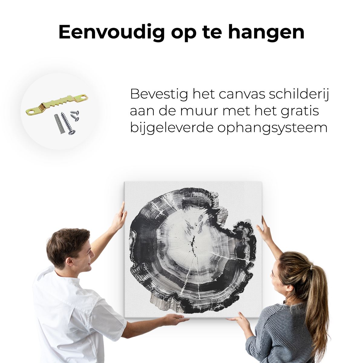 Bij aankoop ontvang je een meegeleverd ophangsysteem, zodat je op een simpele en snelle wijze het schilderij boven de bank of bed kan monteren.